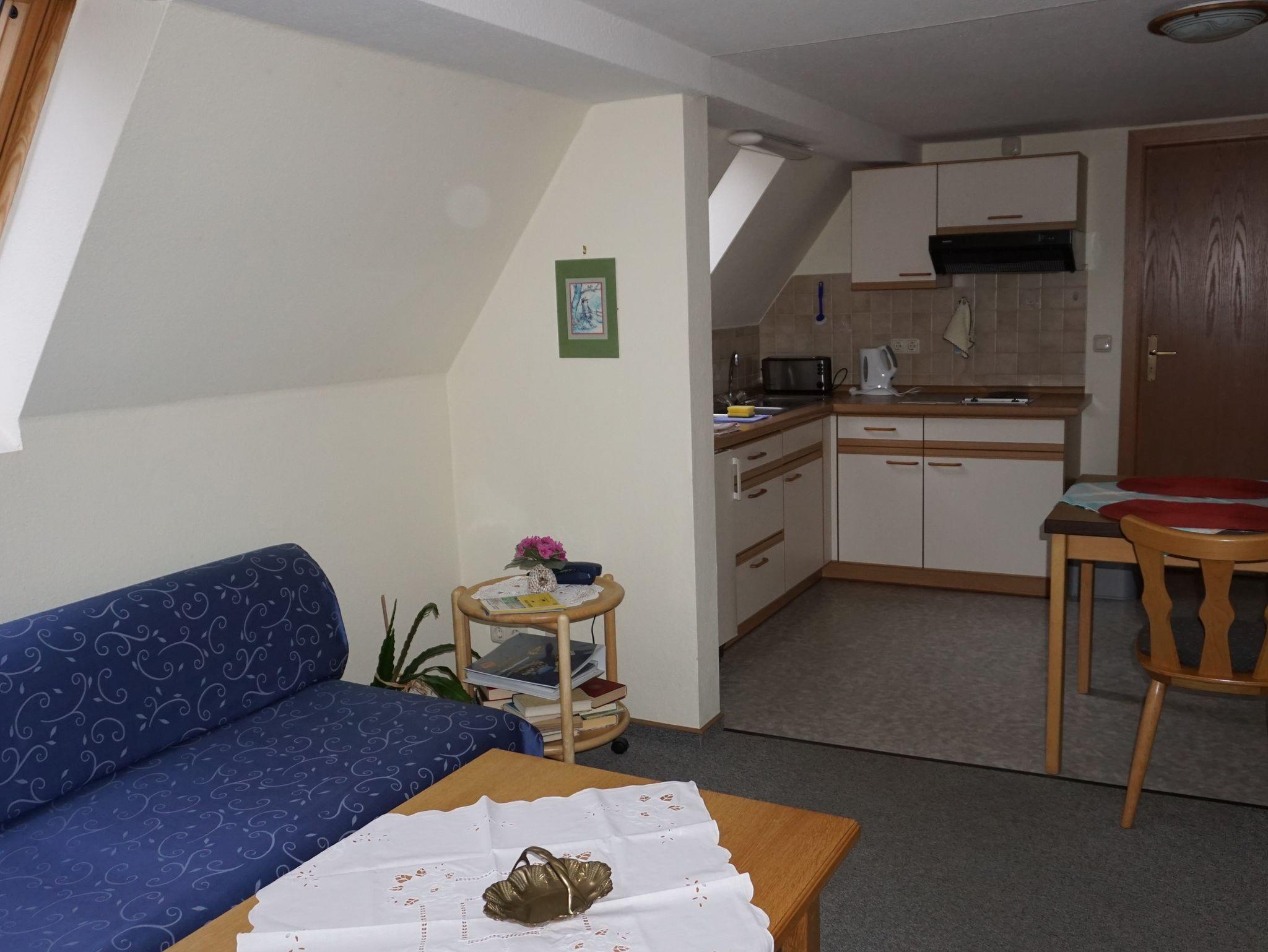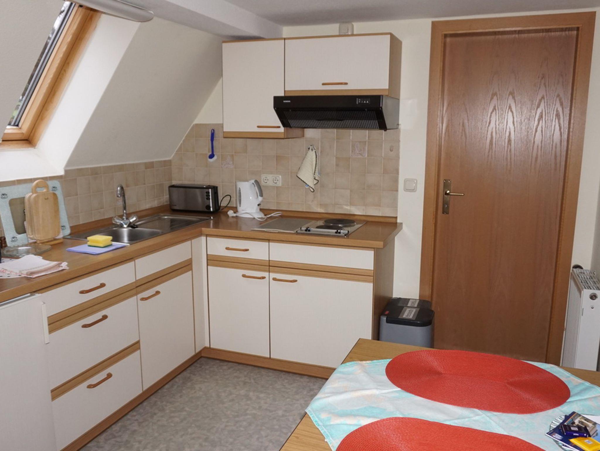 Unser gemütliches NR- Appartement 2 (40qm) mit Wohn-und Schlafraum (Doppelbett 1,80m x 2,00m), Küche und Dusche/WC ausgestattet liegt in der 1. Etage. Auf Wunsch ist Brötchenservice möglich oder Sie genießen mit Aufpreis unser leckeres Frühstücksbuffet in unserer nebenstehenden Pension.