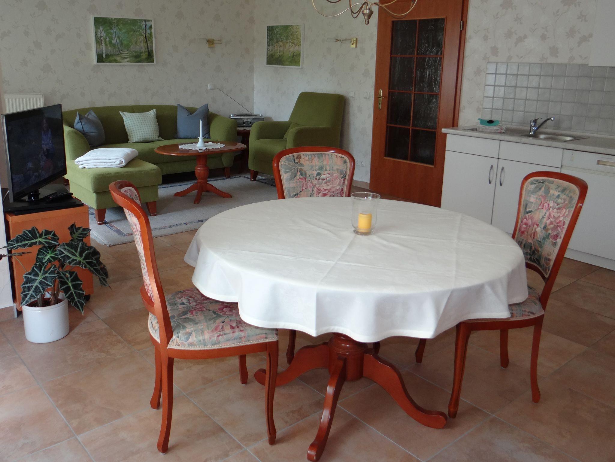 Wir bieten Ihnen eine komfortable Ferienwohnungen (ca. 60qm) im Hochparterre, mit einem großzügigen Wohnzimmer, Schlafzimmer und einem großen Bad mit Fußbodenheizung.