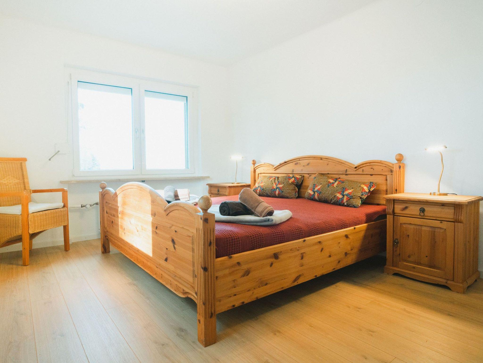 Jede Wohnung verfügt über ein Schlafzimmer mit einem Doppelbett und einem Vollholzschrank