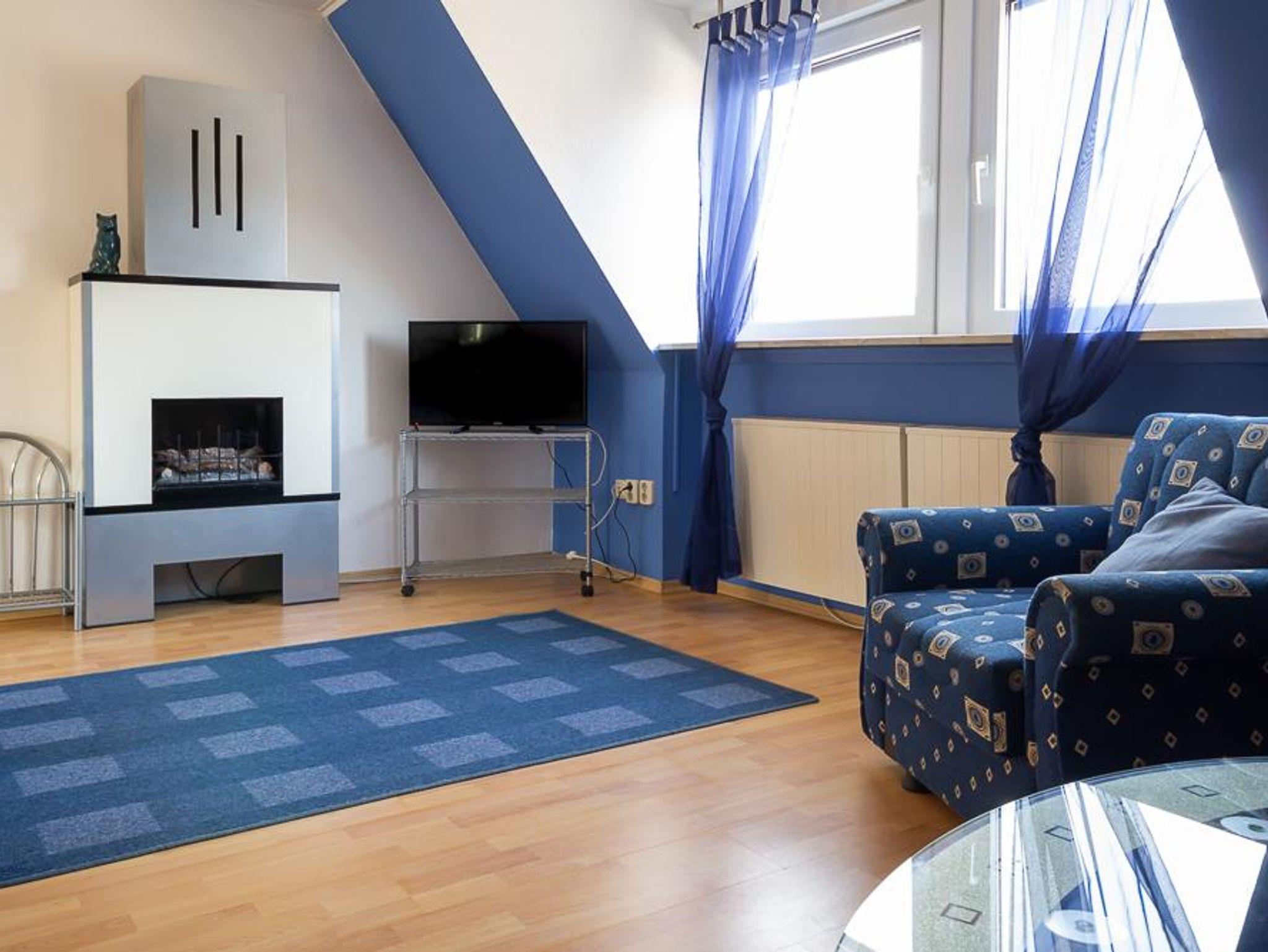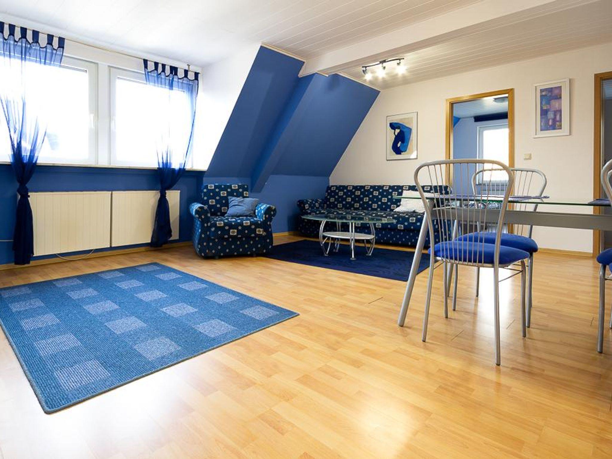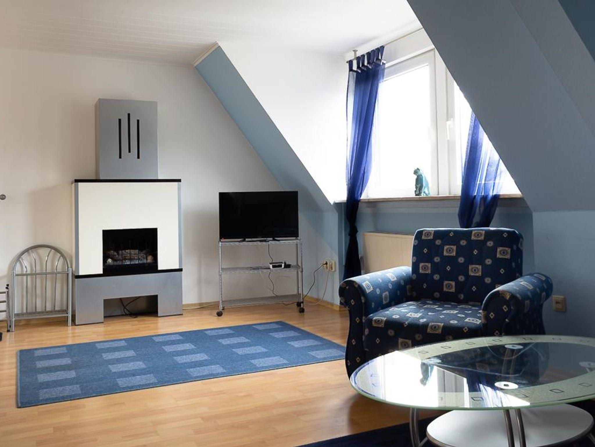 Die Ferienwohnung Blue Sky befindet sich im Herschaftshaus in der 2. Etage (Dachgeschoss), hat eine Größe von 60 m² und ist ideal für 1-4 Personen.
