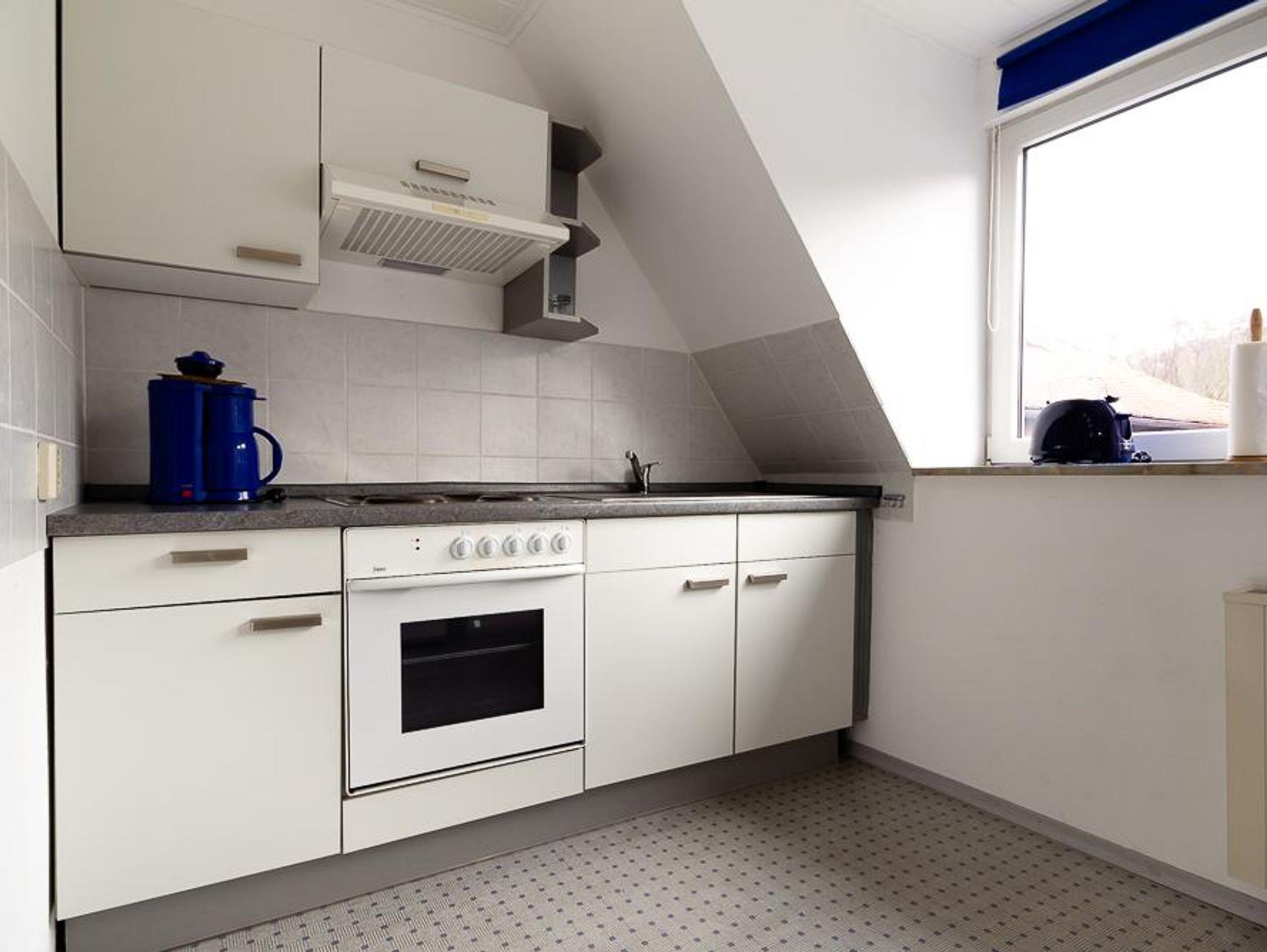 Die Ferienwohnung verfügt über eine komplett eingerichtete Wohnküche mit Geschirr, Kaffeemaschine, Wasserkocher, Elektroherd und Küchlschrank mit Gerfrierfach.