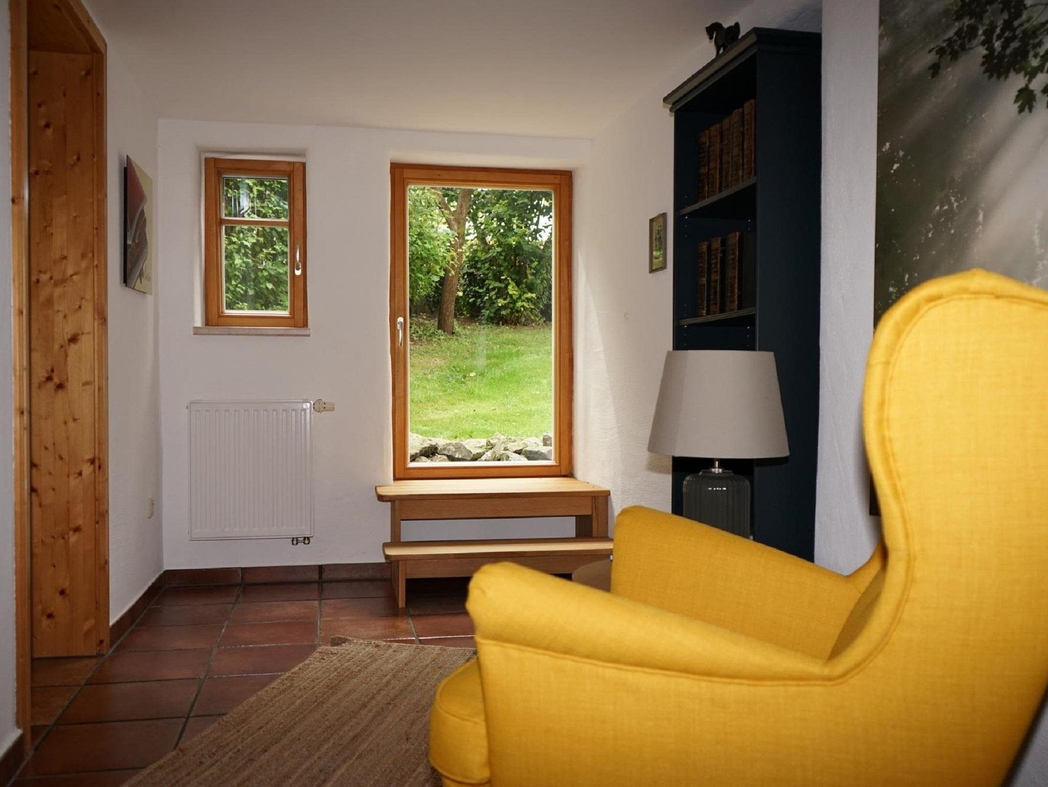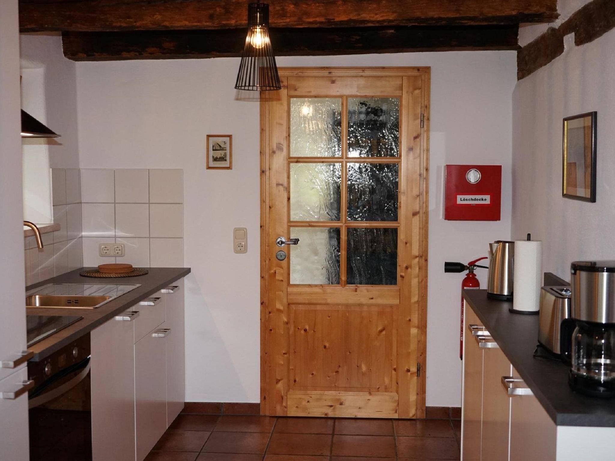 Die Unterkunft befindet sich in den Räumlichkeiten der ehemaligen Müller Wohnung und vereint die Vergangenheit mit der Zukunft. Sie verfügt über ein gemütliches Wohn-/Schlafzimmer mit Blick in den Innenhof oder Garten. Das große Schlafzimmer ist mit einem hochwertigen Zedernholzbett eingerichtet, für einen erholsamen Schlaf. Die Küche ist mit einer modernen Einbauküche und schöner Eckbank mit Tisch & Stühlen eingerichtet Der Flur ist das Verbindungselement zu den einzelnen Wohnbereichen und bietet auch einen schönen Leseplatz. Das Bad verfügt über eine Badewanne und ist modern ausgestattet.