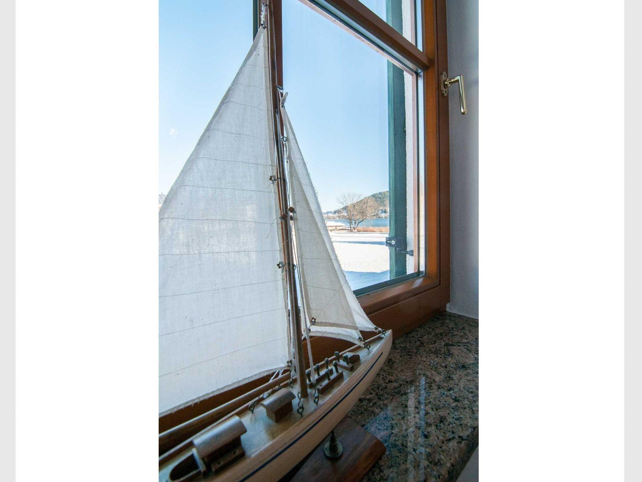 Die Ferienwohnung befindet sich im Erdgeschoß und verfügt über eine Südterrasse, die Ihnen ganztägig Sonne bietet. Aus der Wohnung blicken Sie auf die umliegenden Berge und teilweise auf den See.
