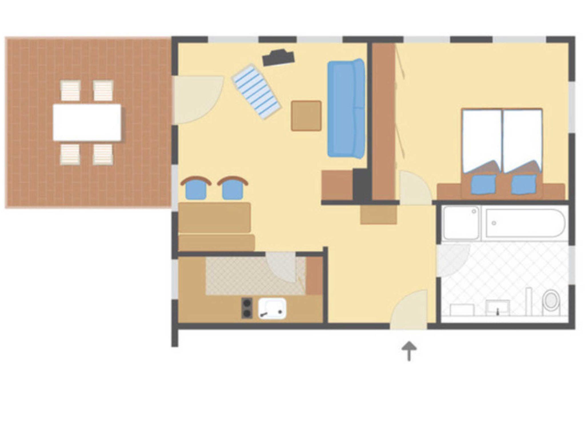 Die 2-Zimmer-Wohnung mit separatem Schlafzimmer hat eine Größe von 65 qm und ist ideal für 2 Personen.