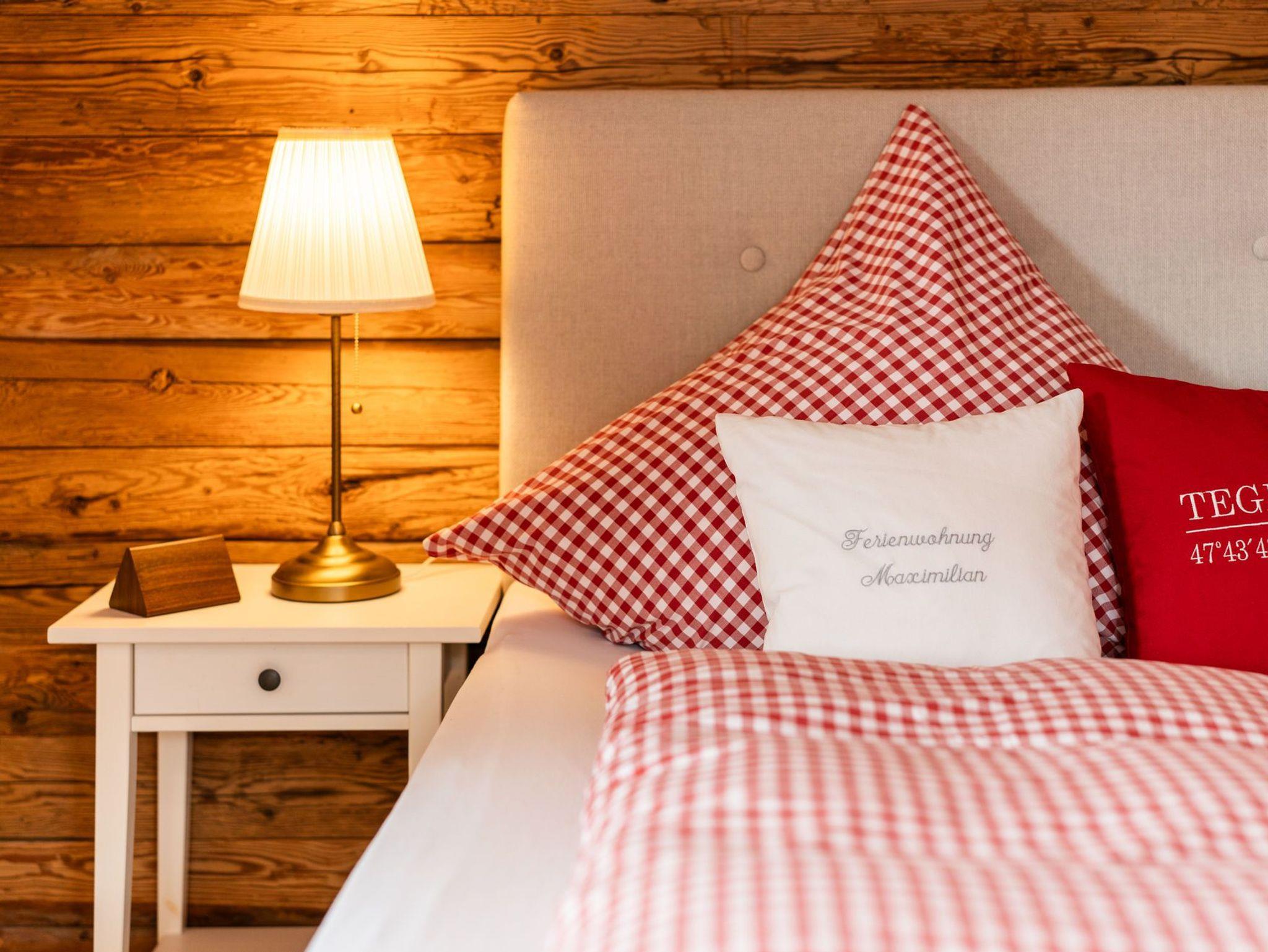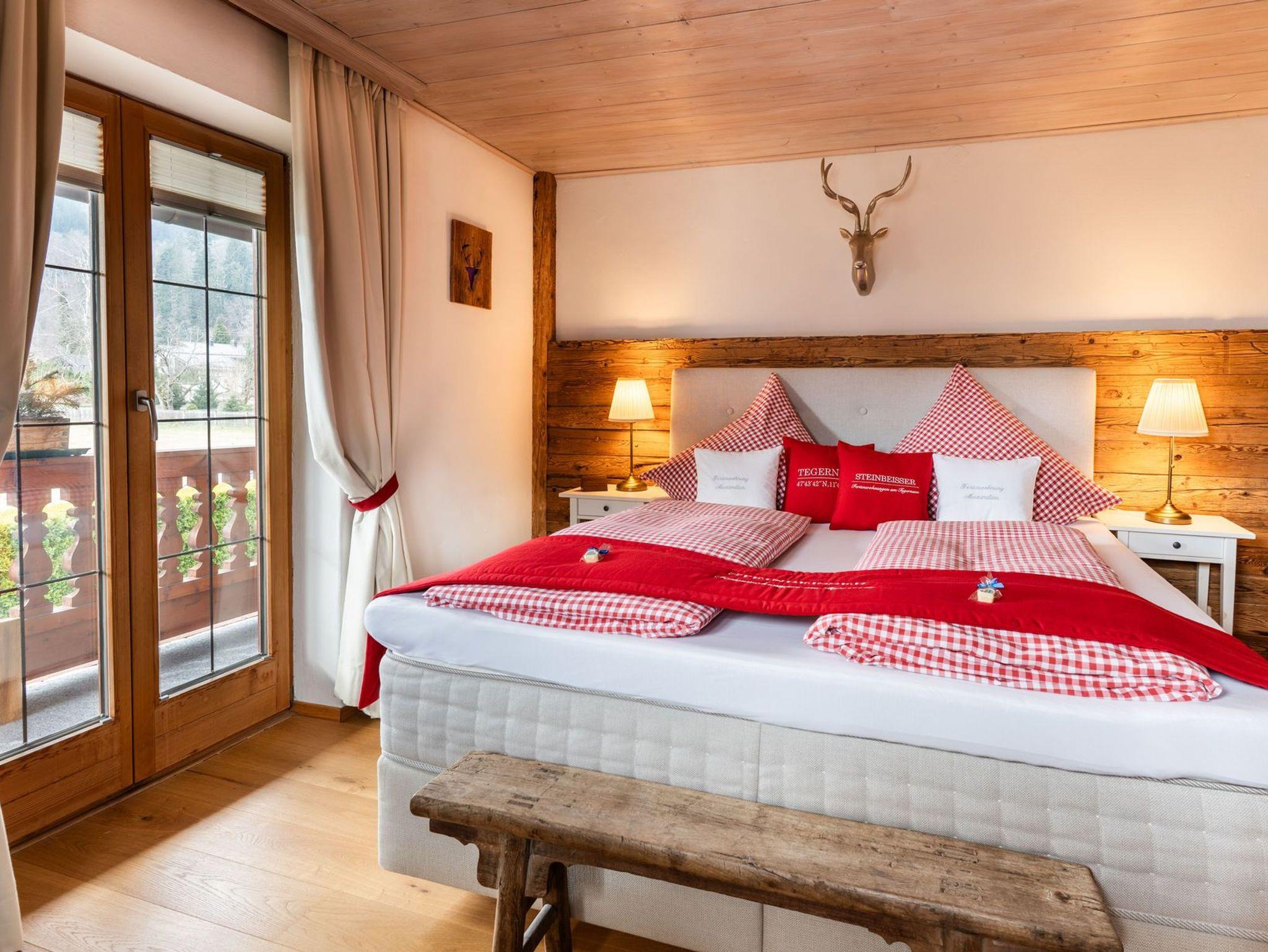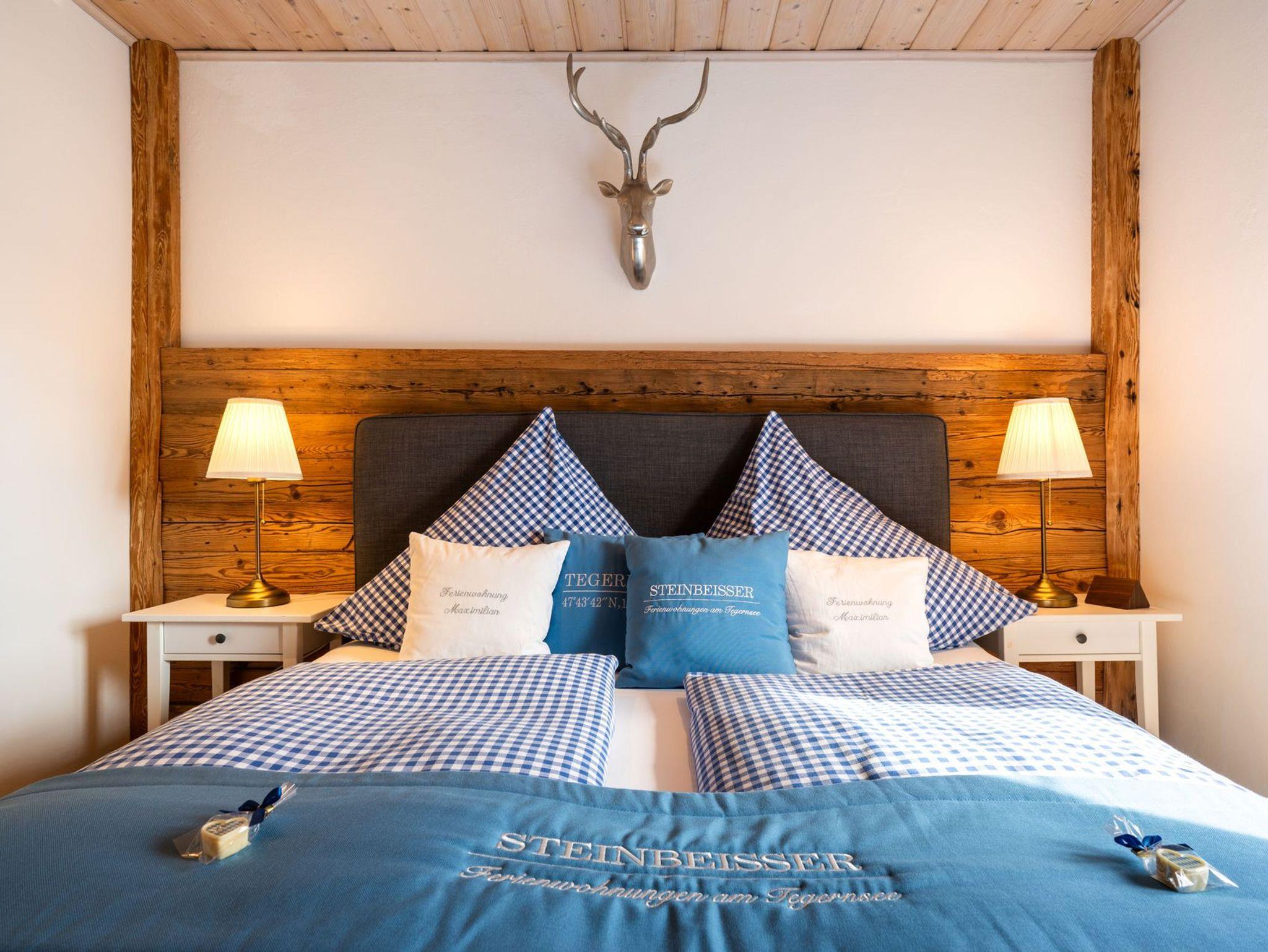 Herzlich Willkommen in Bad Wiessee am wunderschönen Tegernsee in unserer im oberbayerischen Stil laufend renovierten und gemütlichen Ferienwohnung Maximilian. Ihr Urlaubsdomizil ist hochwertig ausgestattet und bietet Ihnen jeglichen Komfort. Die ansprechend mit echtem Altholz ausgebaute Wohnung verfügt über einen großzügigen Wohn- und Essbereich mit holzbefeuertem Kamin, zwei getrennte Schlafzimmer mit bequemen Boxspringbetten, eine separate und voll ausgestattete Küche, zwei Bäder mit Regenduschen, ein extra Gäste-WC, einen umlaufenden Balkon mit Sitzmöglichkeiten, Flachbild-TV mit Vodafone GIGA-TV, Stereoradio mit CD-Player (MP3/USB/Bluetooth-fähig), privaten WLAN-Zugang und Safe. Waschmaschine und Trockner sind in der Wohnung vorhanden. (gegen Gebühr) Ein privater, kostenloser und videoüberwachter Parkplatz für Ihr Fahrzeug, eine KFZ E-Ladestation und eine Liegewiese mit Außengrill inkl. Sitzgarnitur befindet sich direkt am Haus. Auf Wunsch Brötchen-, Zeitungs- sowie Transferservice zum Bahnhof. (gegen Gebühr) Die Tegernsee-Card mit vielen Vergünstigungen (z.B. kostenlose Nutzung des Bus- und Schifffahrtsnetzes am See) ist für jeden Gast im Preis inbegriffen.
