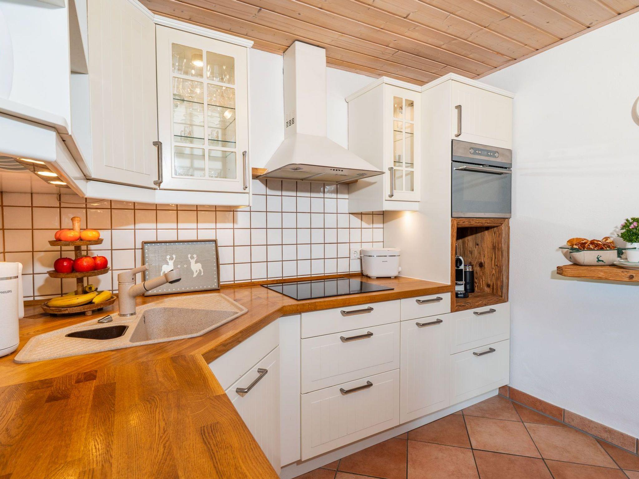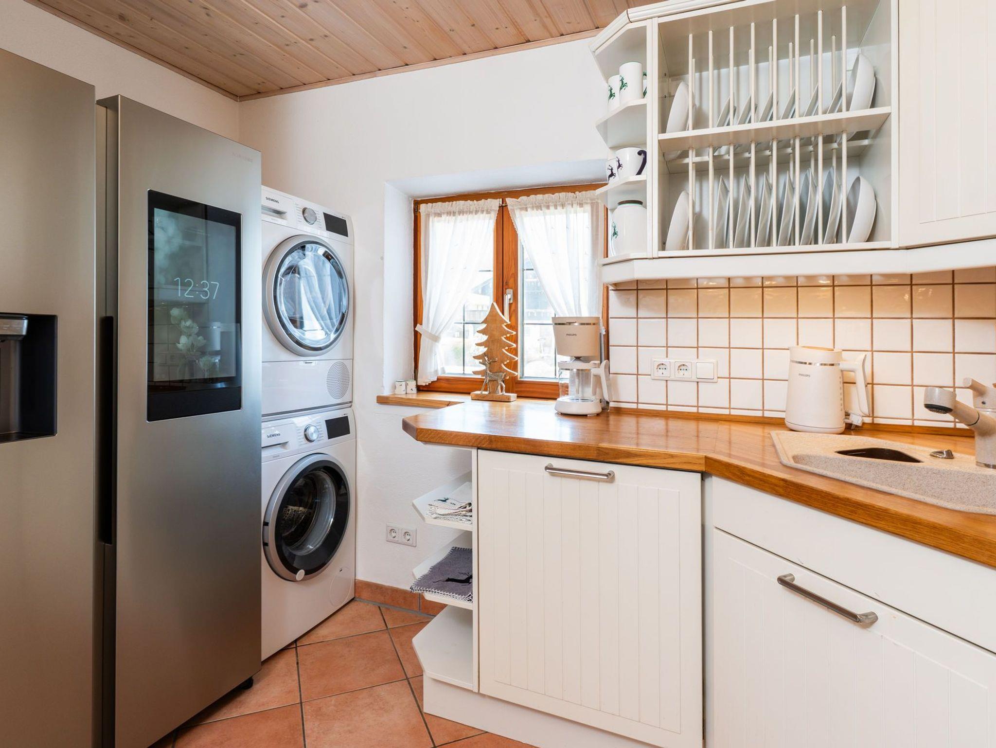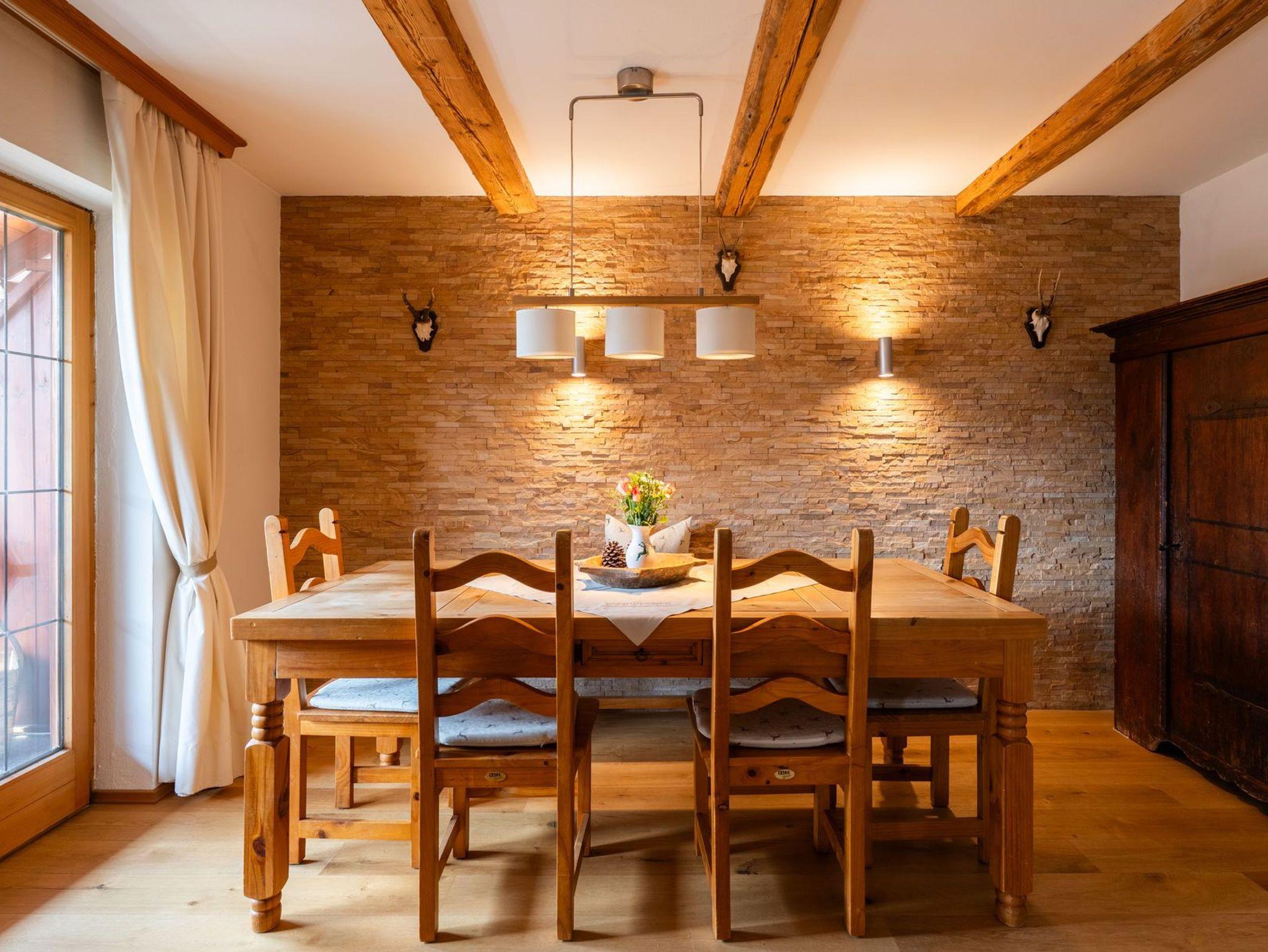 Die gemütliche und laufend renovierte ****Nichtraucherwohnung mit 4 Zimmern, separater Küche, zwei Bädern, extra Gäste-WC und Diele, erstreckt sich über das komplette 1. Obergeschoss des Hauses. Dadurch haben Sie in Ihrer Ferien-Unterkunft keine störenden Nachbarn neben sich. Hochwertig und rustikal aber modern im oberbayerischen Stil ausgebaut, werden Sie sich von Anfang an wie zu Hause fühlen. Hier treffen alte Materialien auf neue Technik. Verkleidungen und Einbauten wurden mit viel Liebe zum Detail aus echtem Altholz gefertigt, die Fußböden sind mit Landhausdielen ausgelegt. Hochwertige Stoffe schaffen eine gemütliche Atmosphäre. Im großzügigen Wohnbereich befindet sich ein holzbefeuerter Kaminofen für die kalten Tage, im daran anschließenden Esszimmer steht ein großer Holztisch für gesellige Stunden. Die voll ausgestattete Küche mit Induktionsherd, Backofen, smartem Side-by-Side Kühlschrank und Spülmaschine lässt keine Wünsche offen. Nespresso- sowie normale Kaffeemaschine, Wasserkocher und Toaster sind dort ebenso selbstverständlich wie ausreichend Geschirr und Besteck. Hier finden Sie auch eine Waschmaschine sowie einen Trockner vor (gegen Gebühr). Beide Badezimmer bieten Ihnen neben Waschtisch mit zusätzlichem Kosmetikspiegel und Haartrockner zeitgemäße Regenduschen. Auf dem überdachten und regengeschützten Balkon befinden sich ausreichend Sitzmöglichkeiten. Gerne können Sie sich aber auch auf der Liegewiese hinter dem Haus mit einem guten Buch entspannen. Liegestühle, Gartenmöbel und ein Außengrill stehen dort zu Ihrer freien Verfügung. Frische Bettwäsche, kuschelige Bademäntel und Handtücher sowie Endreinigung sind im Preis enthalten, ebenso wie die Tegernsee-Card für jeden Gast.