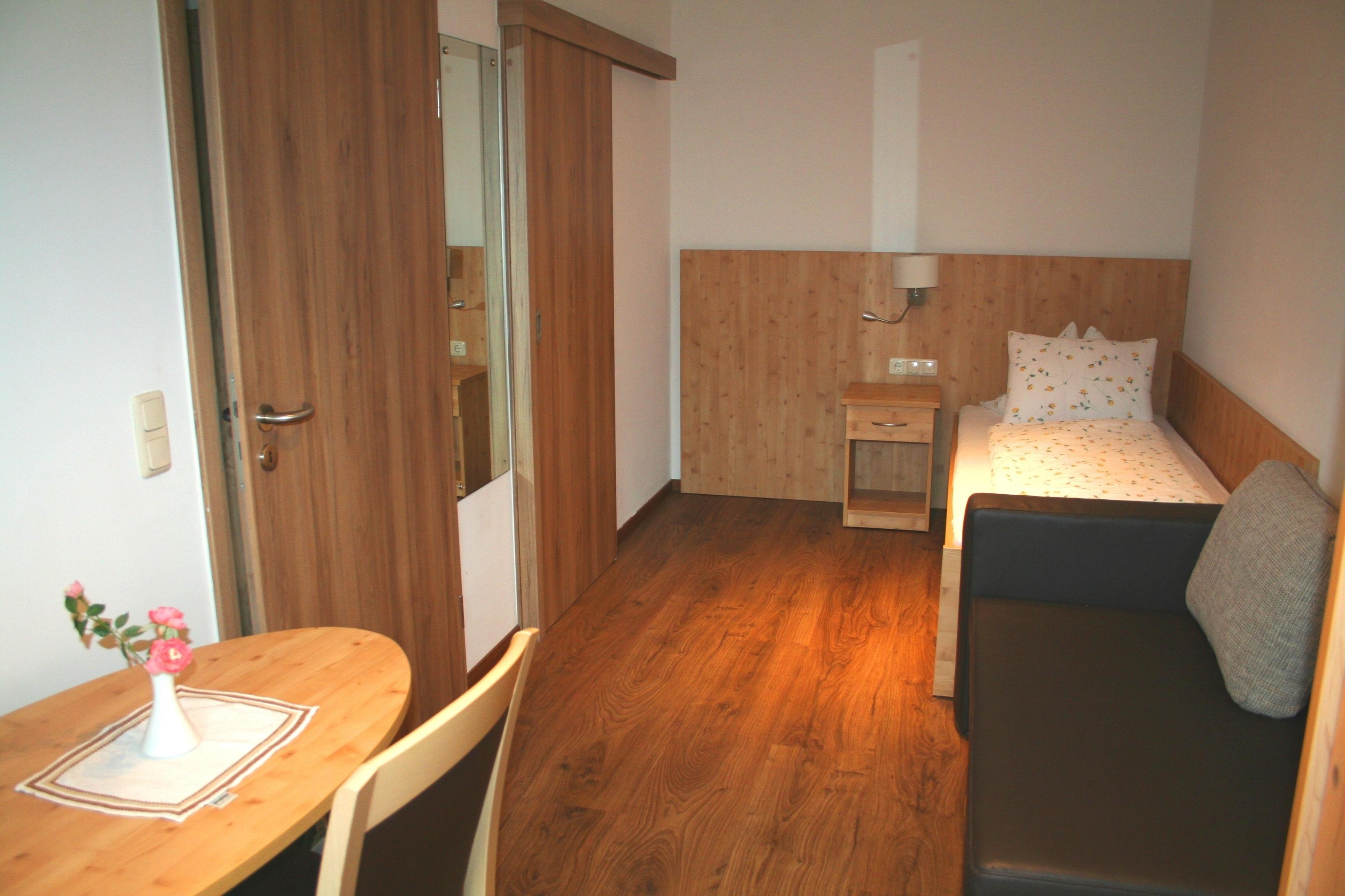 Im zweiten Schlafzimmer steht ein Einzelbett Höhe ohne Matratze 47cm, mit Matratze ca. 51cm) und verfügt über ein ausziehbares 2. Bett und eine kleine Couch (auch als 3. kleineres Bett nutzbar), so das dort 2 Personen und 1 Kind schlafen können oder eine extra gemütliche Sitzgelegenheit haben.