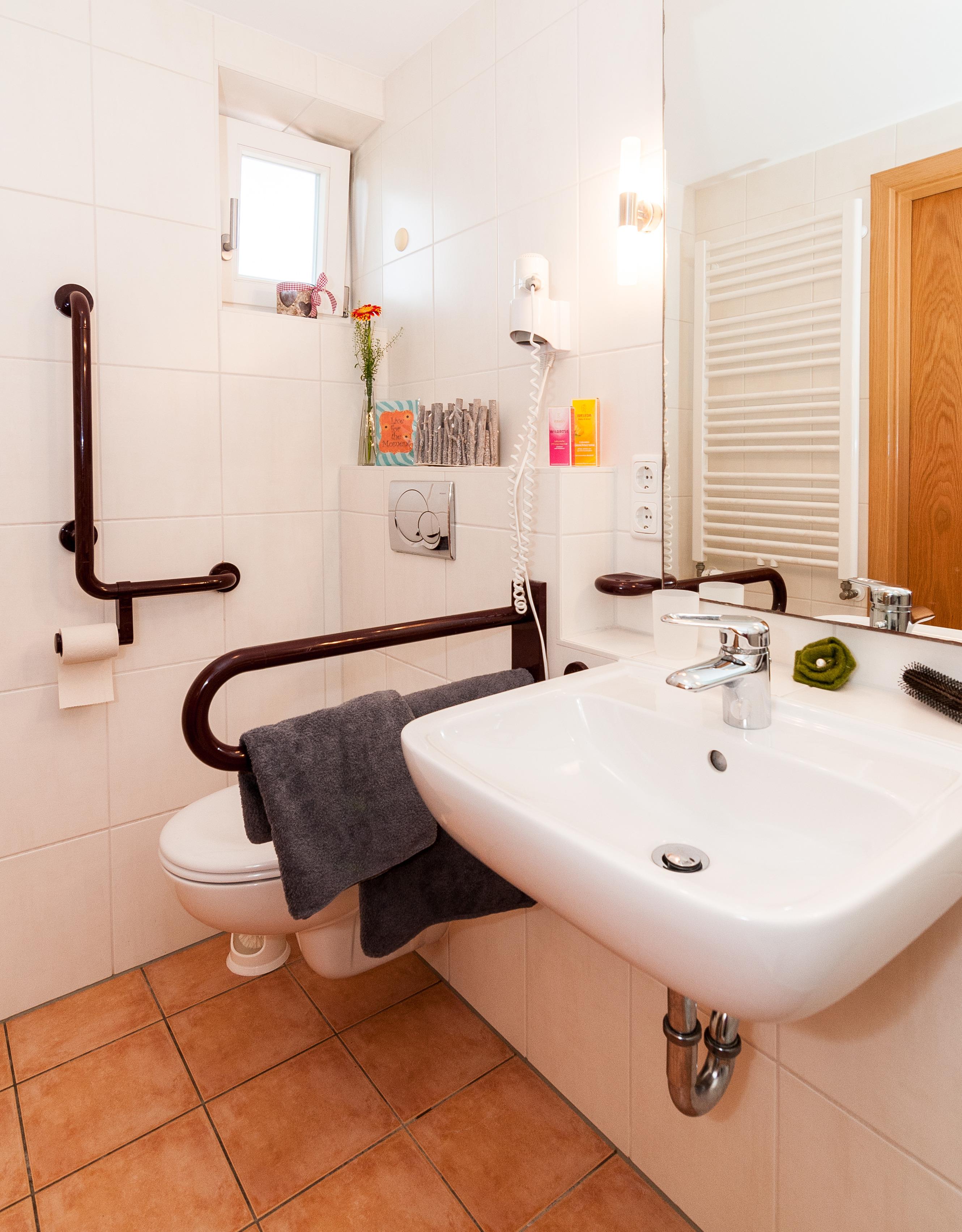 Diese Wohnung hat ein Wohnzimmer mit Couch und Sessel, Esstisch und Küchenzeile. Die Besonderheit bei dieser Wohnung, sie besteht aus 2 Einzelbettschlafzimmern mit jeweils angrenzendem Bad Dusche/WC und ist somit bestens für getrennt Schläfer geeignet. Für Gehbehinderte ist die Wohnung bedingt geeignet, für Rollstuhlfahrer ist die Wohnung nicht geeignet.