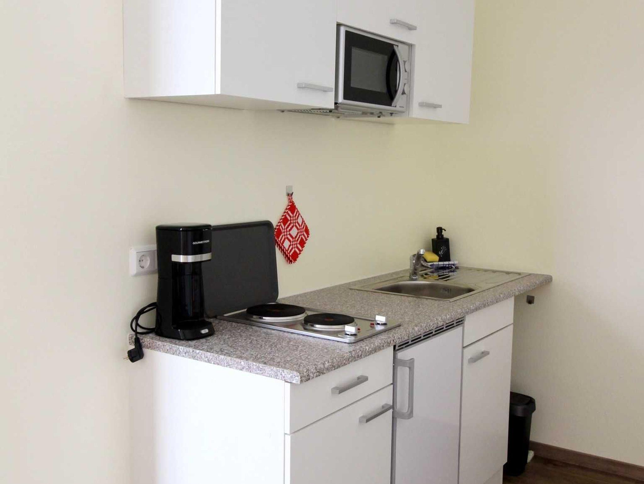 -Miniküche mit Mikrowelle, 2 Kochplatten und Kühlschrank