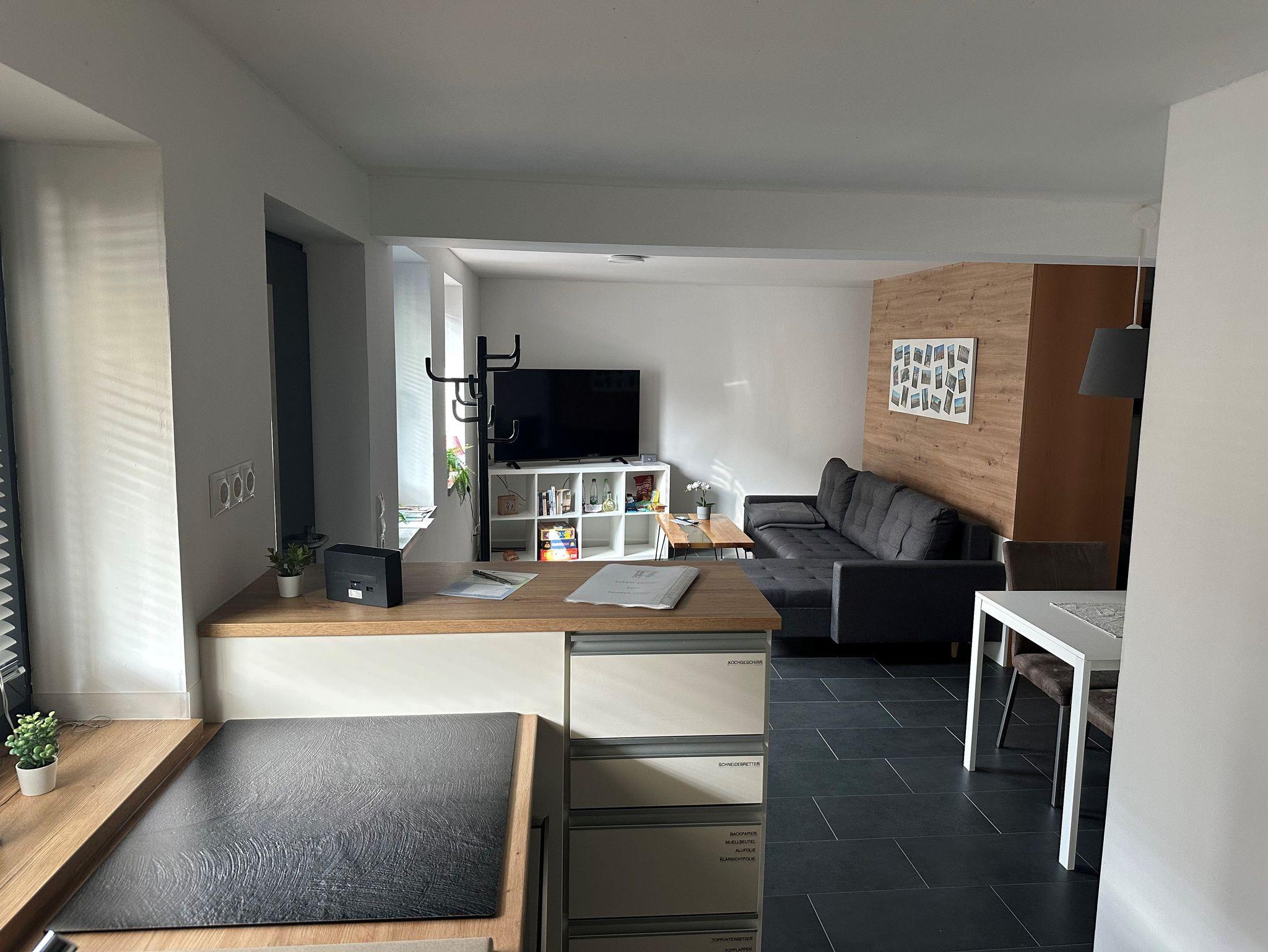 Die im Februar 2025 fertiggestellte Ferienwohnung ist mit allen Annehmlichkeiten ausgestattet. Es erwartet Sie eine moderne, praktisch und zugleich liebevoll eingerichtete Wohnung für eine bis max. vier Personen (Doppelbett, ab der 3. Person ist eine Schlafcouch vorhanden) mit einer Wohnfläche von 45 qm. Kostenloses W-LAN und 55 Zoll Flatscreen/SAT-TV im Wohnbereich bieten Ihnen den gewohnten Komfort.