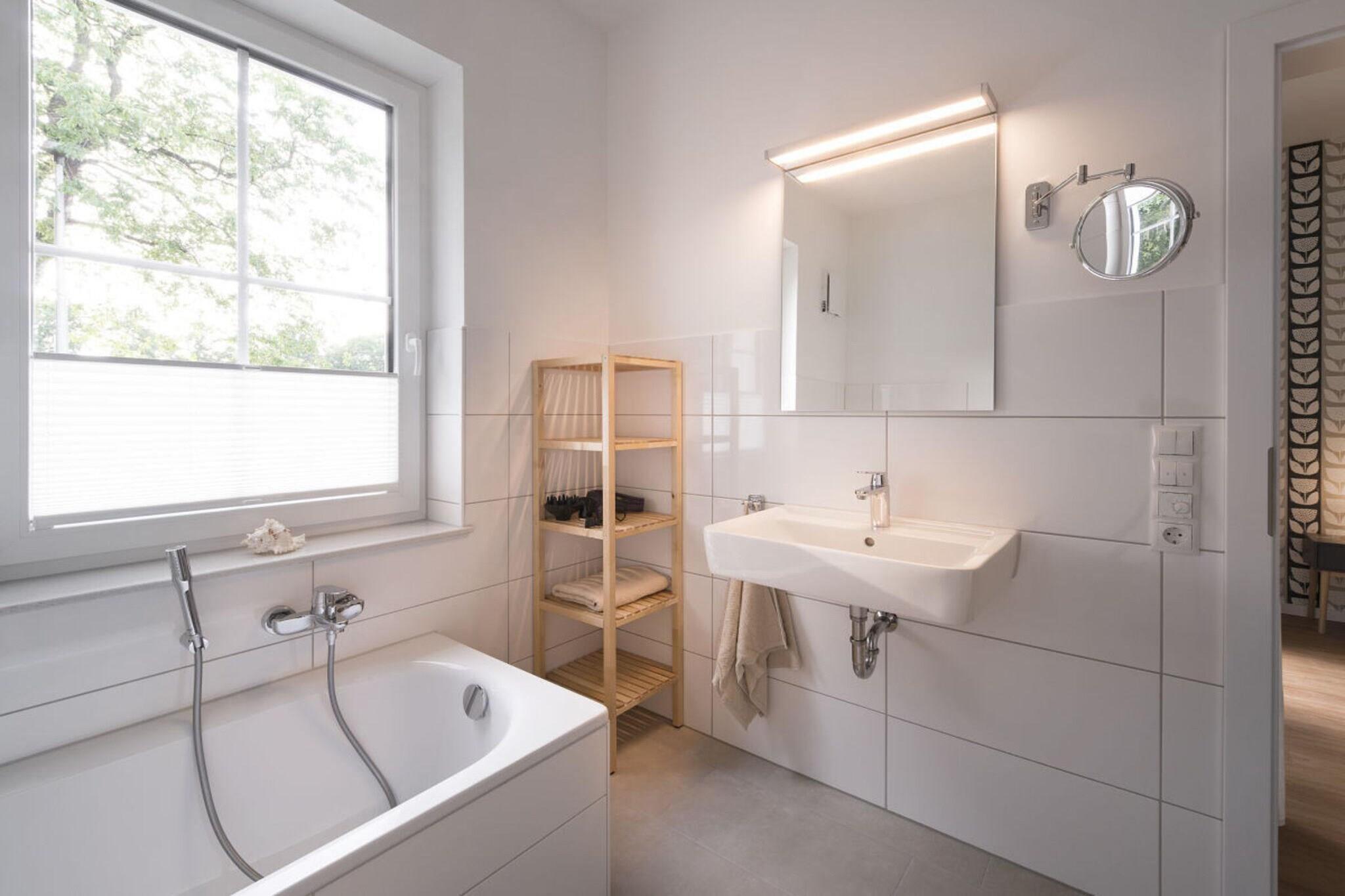Velkommen til vår vennlige og lyse 5-stjerners 2-roms ferieleilighet i kurbyen Bad Zwischenahn. Leiligheten har moderne bekvemmeligheter, og den antikke stilen i interiøret skaper en luksuriøs feel-good-opplevelse for opptil 2 voksne. De elegante gulvene og gulvvarmen i hele stuen skaper en spesielt vakker atmosfære. Soverommet er innredet med en elektrisk justerbar dobbeltseng med springfjærmadrass og har direkte utgang til terrassen. Hjertet i leiligheten er den romslige stue-spisestuen med åpen planløsning, som ikke lar noe tilbake å ønske med et moderne, fullt utstyrt kjøkken med elektrisk komfyr, mikrobølgeovn, stekeovn og oppvaskmaskin. Start dagen med en nykvernet kaffe fra den helautomatiske kaffemaskinen. Spill av favorittmusikken din via Bluetooth hi-fi-systemet, bruk gratis Wi-Fi, eller se favorittserien din på Netflix på TV-en. De sjenerøse fasilitetene tilbyr en perfekt kombinasjon av komfort og livsstil. Vindusbadet inviterer deg til å nyte et langt boblebad i badekaret, og tilbyr også en separat dusjkabinett. For oppholdet ditt tilbyr vi friskt sengetøy, håndklær, friske badekåper og mange andre ekstrautstyr gratis. Fasilitetene inkluderer også vaskemaskin og tørketrommel, samt strykejern og strykebrett. Ved opphold på mer enn en uke kan leiligheten rengjøres kostnadsfritt på forespørsel. "Ferienwohnung am See" (ferieleilighet ved innsjøen) er en liten oase for velvære og avslapning. Vi ser frem til din bestilling!