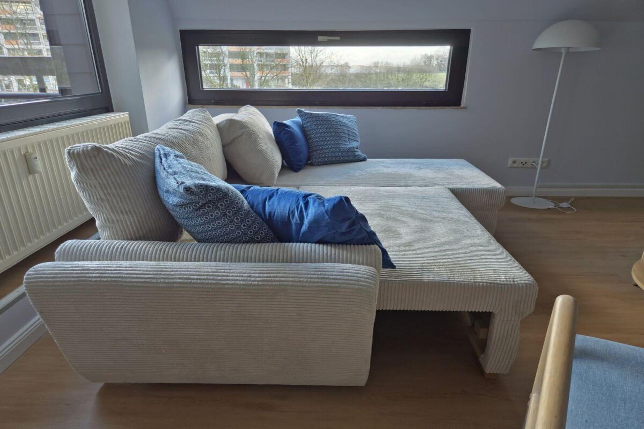 I åsene i Bad Zwischenahn finner du den stilfulle ferieleiligheten Stella med maritim stil. Den sentrale beliggenheten gir deg rask tilgang til sentrum eller det omkringliggende landskapet via en idyllisk sykkelsti. Leiligheten i første etasje, tilgjengelig via trapper eller heis, ble møblert i 2025. Fra stuen og soverommet har du en fantastisk utsikt over Zwischenahnsjøen. Kjøkkenet er utstyrt med kokekar og hvitevarer av høy kvalitet. Spisebordet kan trekkes ut, noe som gir god plass til en bærbar PC hvis du ønsker å kombinere ferie og arbeid. Stuen har en smart-TV med gratis Netflix-konto, en liten lydplanke og en sovesofa. Denne har komfortabel plass til to voksne og et lite barn. Soverommet er møblert med en stor 1,8 x 2 m seng og et helfigursspeil. Gratis bruk av vaskemaskin og tørketrommel er inkludert. For kaffeelskere er en helautomatisk kaffemaskin, en mokakanne eller en klassisk dryppkaffetrakter tilgjengelig.