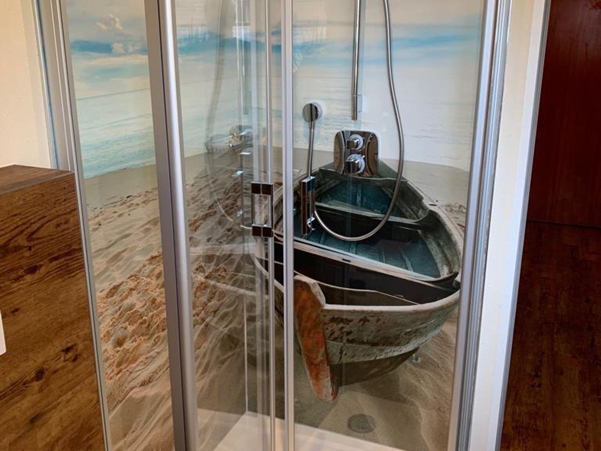 Morgens ein gemütliches Frühstück, Mittags ein kleiner Salat von Ihnen zubereitet in der komplett ausgestatteten Küche und Abends vielleicht ein entspanntes Abendessen in unserem Restaurant „Der Ahrenshof“ 350 m entfernt (bitte unbedingt reservieren Tel: 04403-4711). Später lassen sie den Abend bei einem Glas Wein in Ihrer gemütlichen Sofaecke ausklingen. Unsere exklusiven Boxspringbetten garantieren Ihnen danach einen erholsamen Schlaf. Hat sie das Badezimmer überrascht?