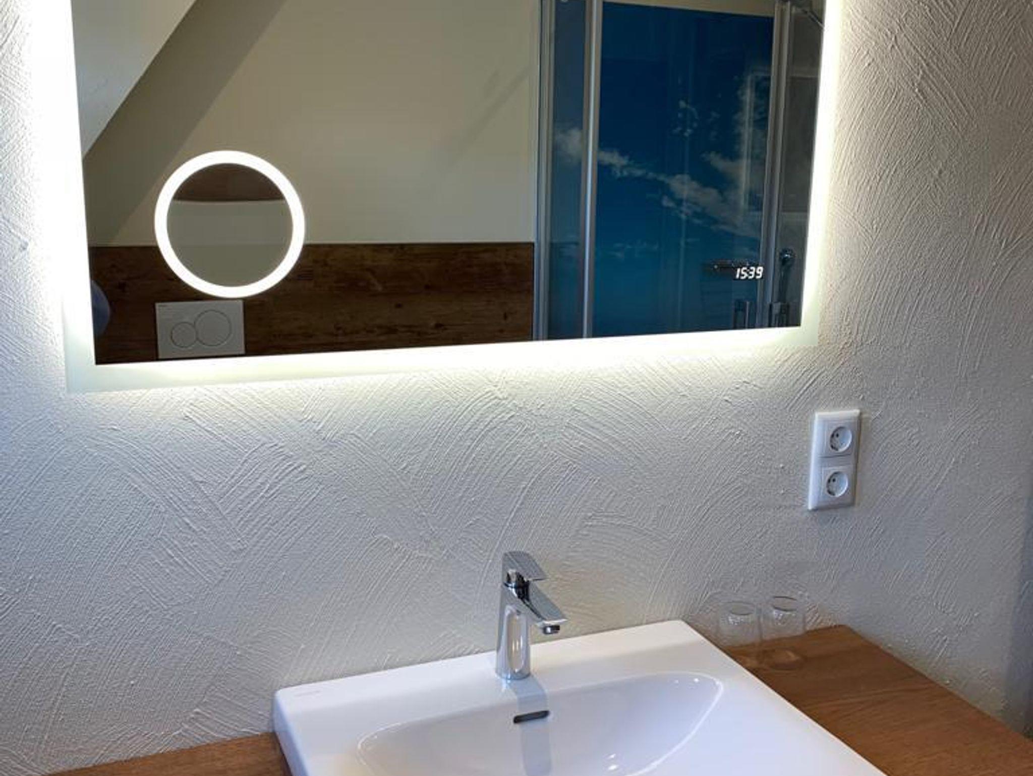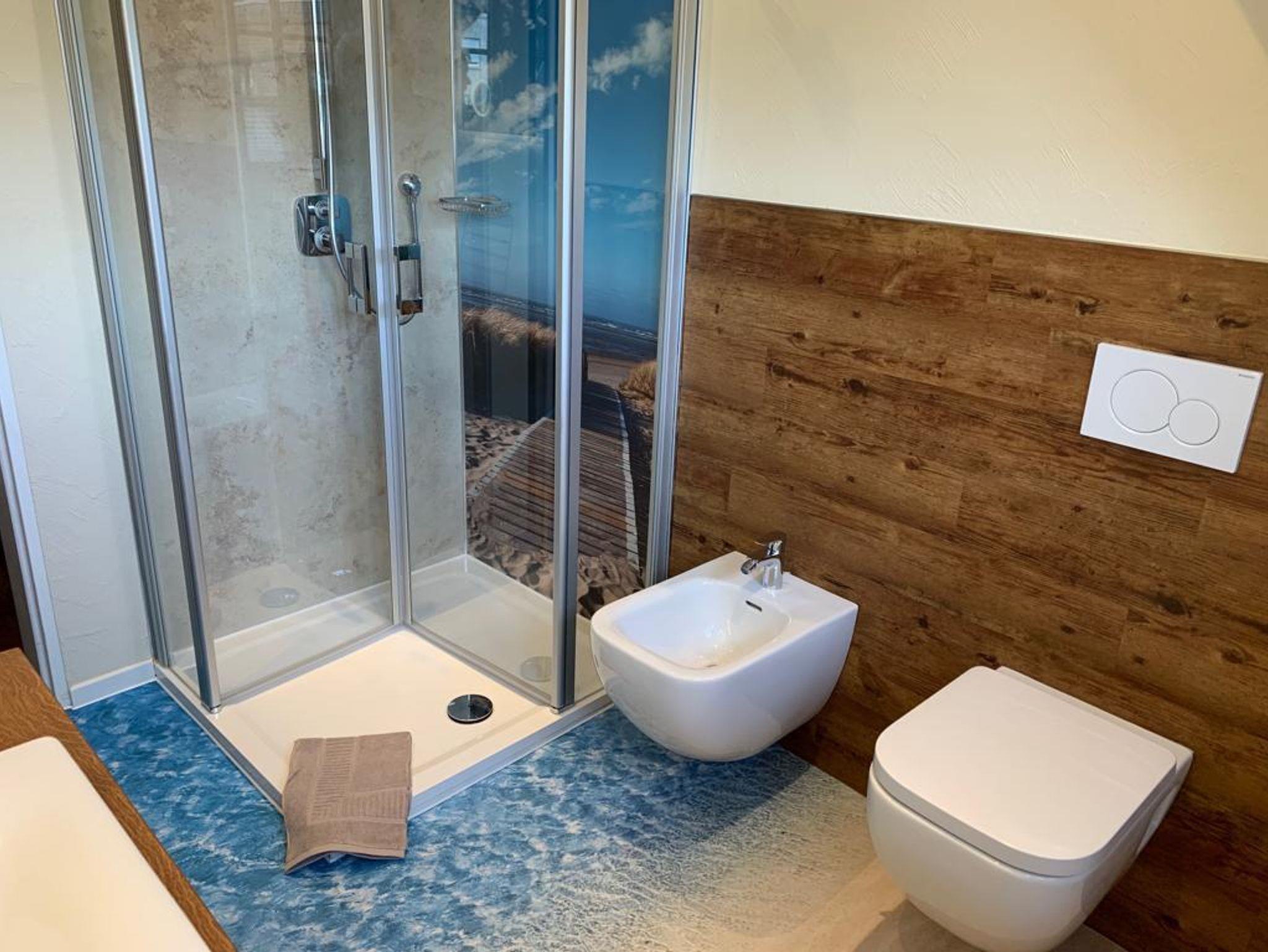Morgens ein gemütliches Frühstück, Mittags ein kleiner Salat von Ihnen zubereitet in der komplett ausgestatteten Küche und Abends vielleicht ein entspanntes Abendessen in unserem Restaurant „Der Ahrenshof“350 m entfernt (bitte unbedingt reservieren Tel: 04403-4711). Später lassen sie den Abend bei einem Glas Wein in Ihrer gemütlichen Wohnlandschaft ausklingen. Unsere exklusiven Boxspringbetten garantieren Ihnen danach einen erholsamen Schlaf. Hat sie das Badezimmer überrascht?