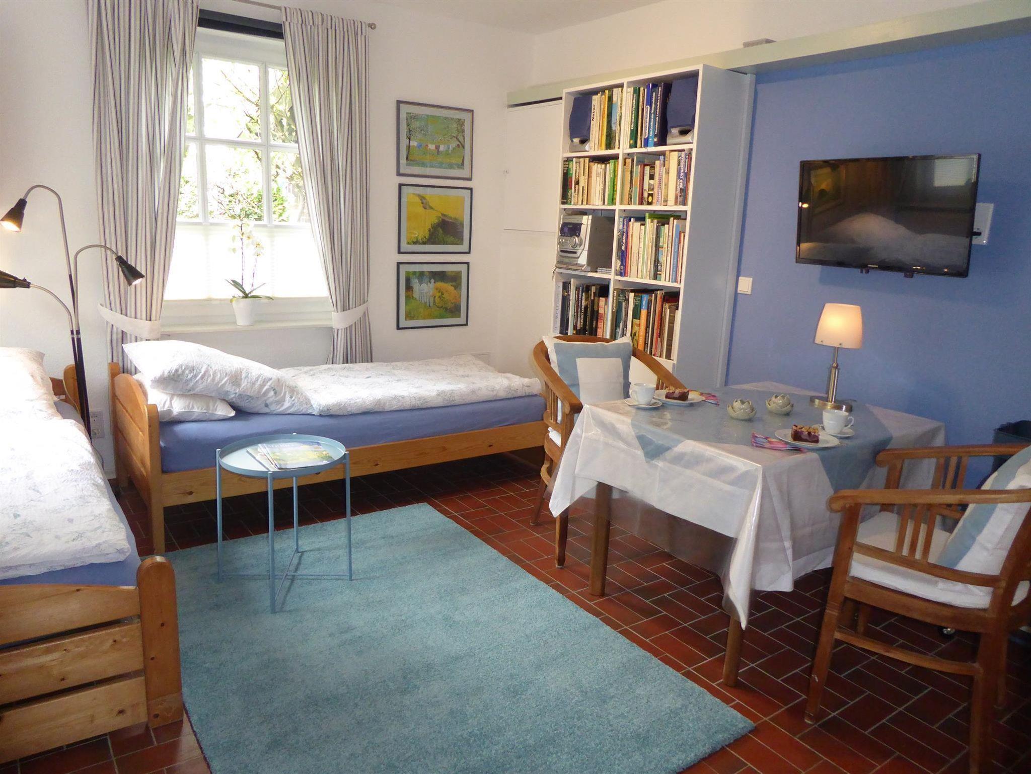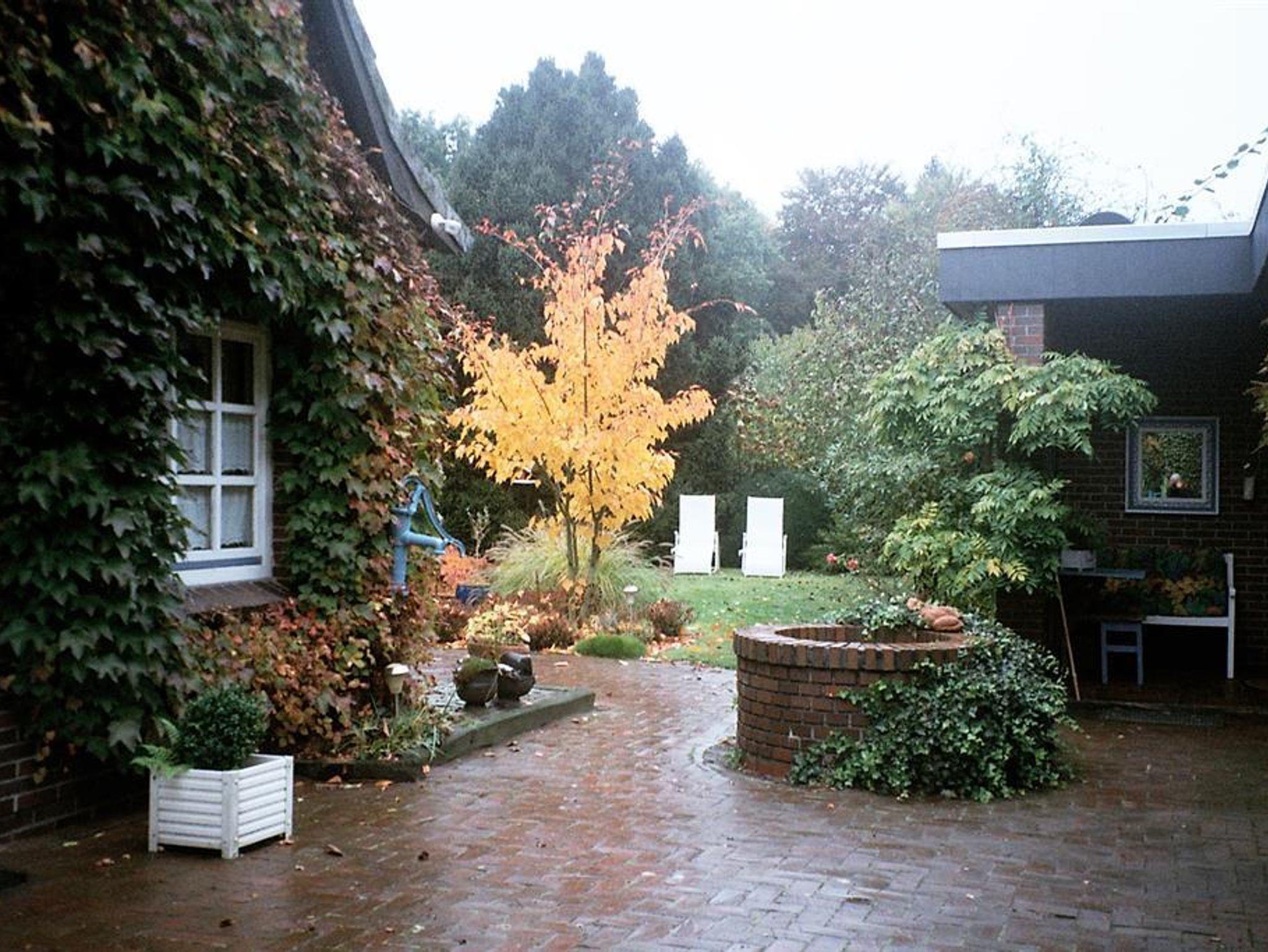 Einfamilienhaus aus Natur-Klinkerstein mit Sprossenfenstern auf 2200 qm großem parkähnlichem Grundstück mit Ferienwohnung. Die Ferienwohnung besteht aus einem Wohn-/Schlafraum mit Kochnische, einem Badezimmer (mit ebenerdiger Dusche), einer Toilette und einem kleinen Flur mit separatem Eingang (Frühjahr 2019 vollkommen renoviert). Sie können eine große Gästeterrasse mit Gartenmöbeln und einem alten Brunnen im Innenhof, direkt vor der Ferienwohnung, zum Entspannen nutzen. Eine weitere Gästeterrasse mit Gartenmöbeln und Liegestühlen befindet sich im gästeeigenen Garten mit Holzhütte (1 Raum) mit Obstbäumen, Buchsbaumhecken und Hainbuchenhecken in sehr ruhiger Lage. Von der Terrasse des Gästegartens können Sie durch einen Rosenbogen auf den bewaldeten Hühnerhof des Nachbarn schauen und bei einer Tasse Tee den Alltag vergessen. Urlaub für die Seele!