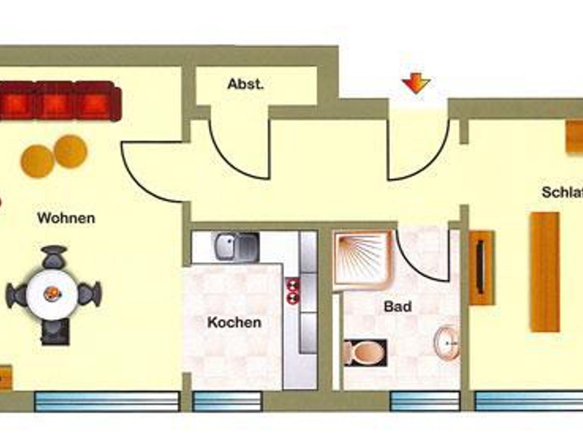 Diese Wohnung mit ca 47 qm liegt ebenerdig im Erdgeschoss.