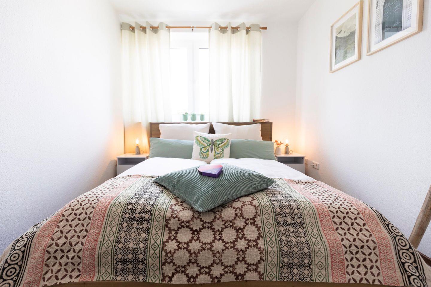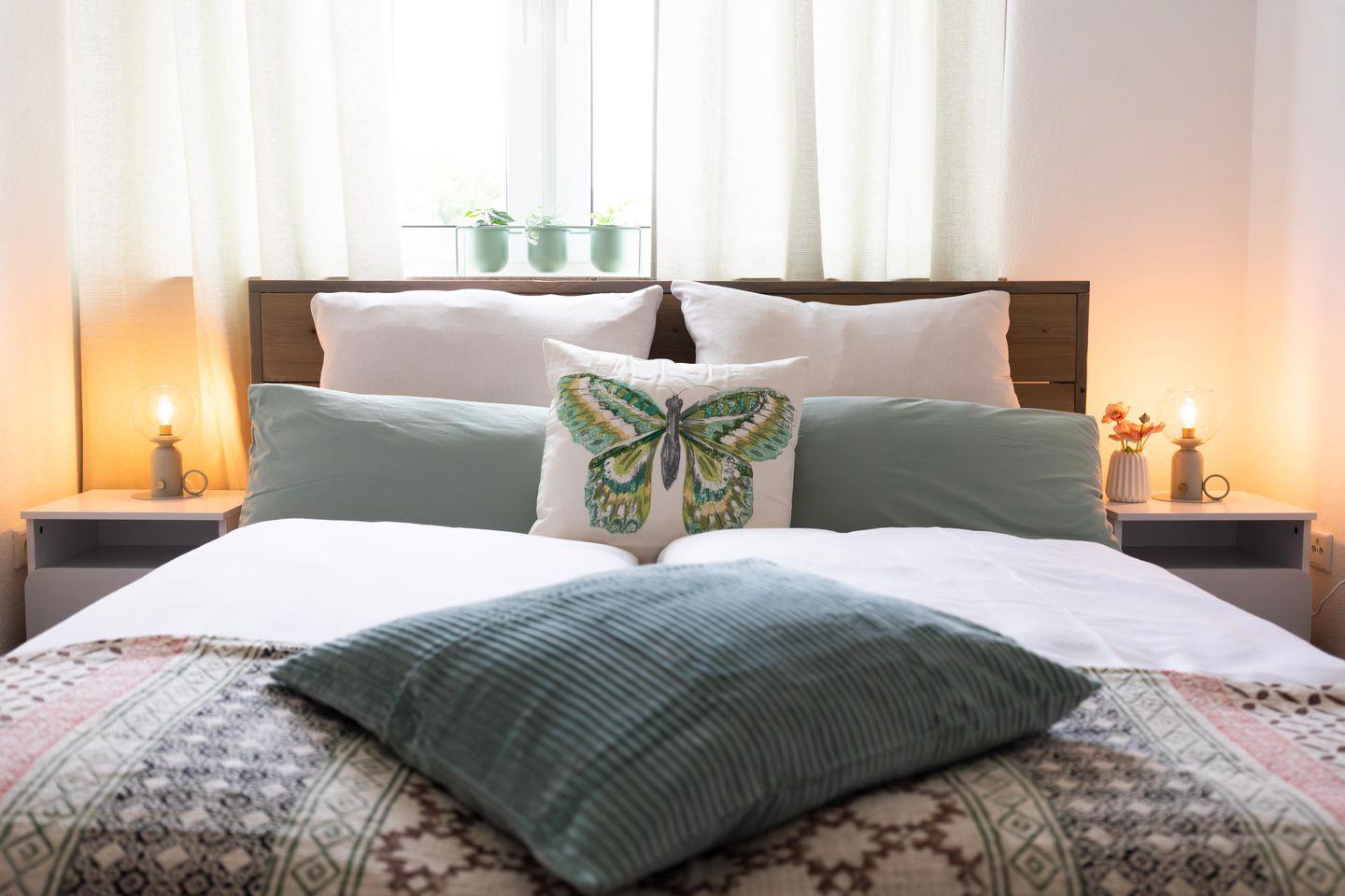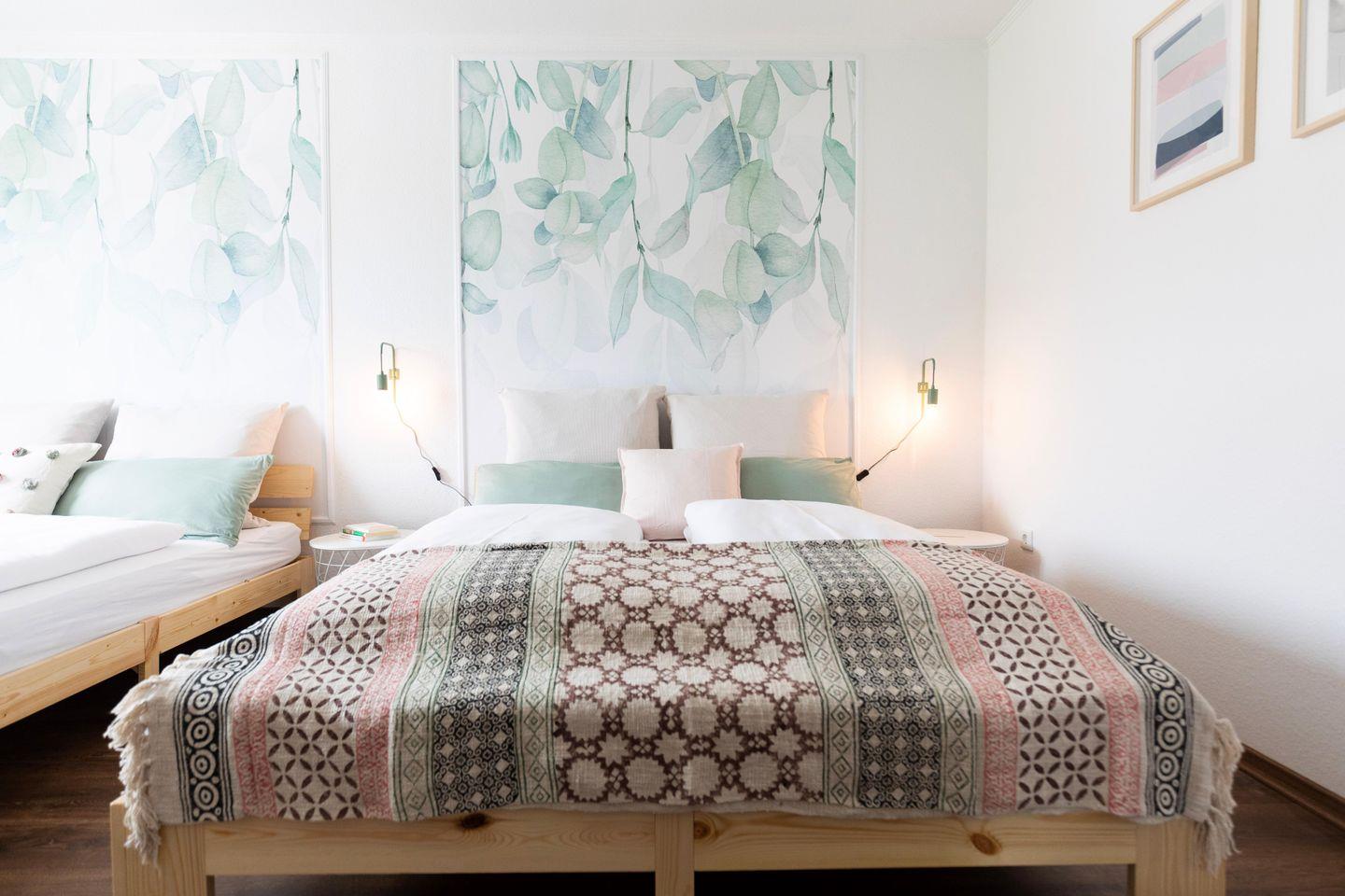 Beide Schlafzimmer verfügen über gemütliche 1,60m Doppelbetten mit hochwertigen Emma Matratzen in die du dich nach einem schönen Tag entspannt fallen lassen kannst.