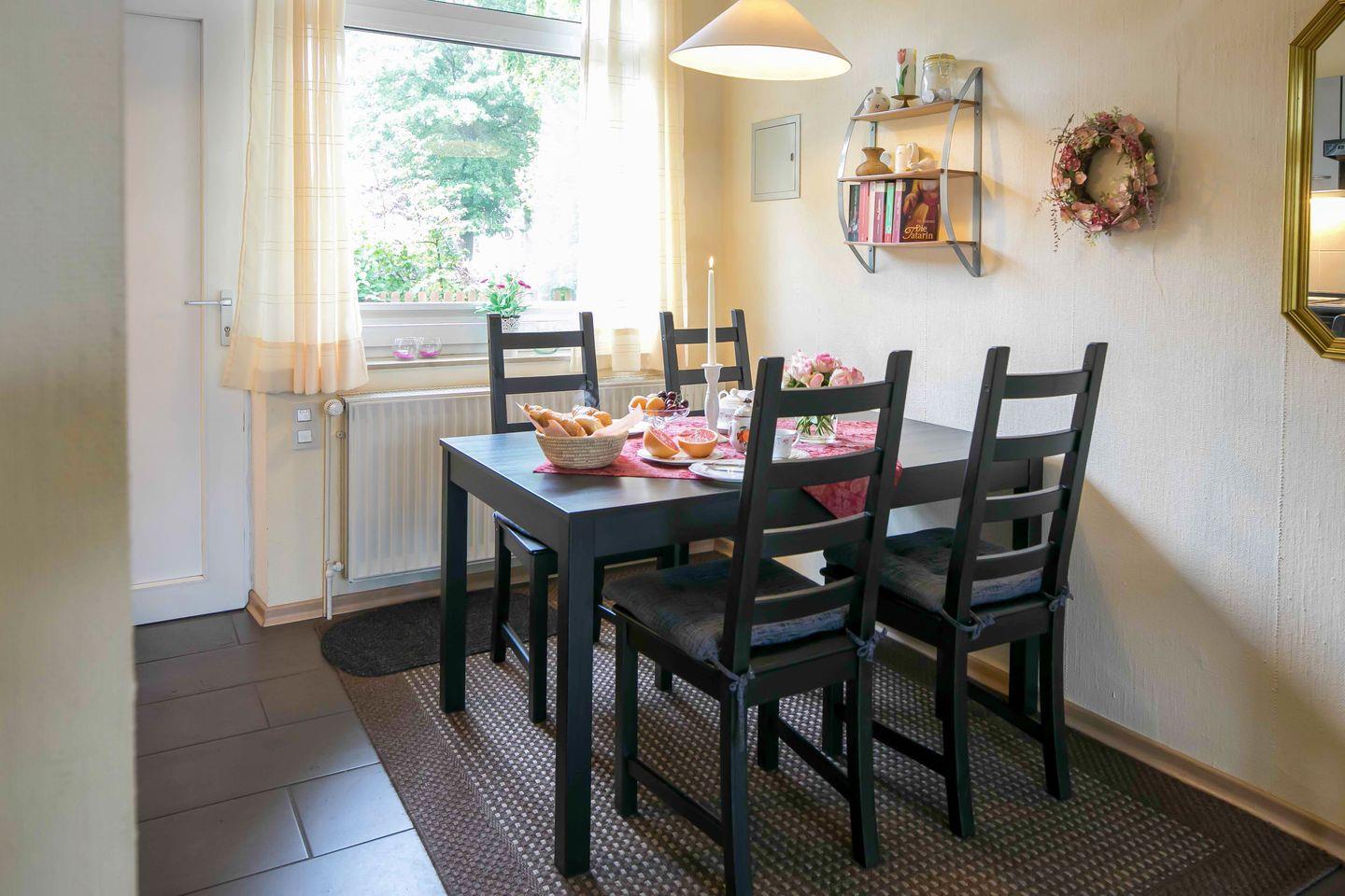 GEEIGNET FÜR MAX. FÜR 2 ERWACHSENE + 2 KINDER - Herzlich willkommen im Ferienhaus "An der Bäke" in Bad Zwischenahn! Jede Wohnung hat ein Wohnzimmer mit offener Küche, ein Schlafzimmer mit Doppelbett, ein Badezimmer und ein charmantes Dachzimmer für Kinder. Mit eigenem Eingang, Terrasse, WLAN und TV ausgestattet, garantieren sie einen angenehmen Aufenthalt. Die gut ausgestatteten Küchen, Fahrradschuppen und zentrale Lage im Ortskern ermöglichen eine flexible und entspannte Erkundung der Umgebung.