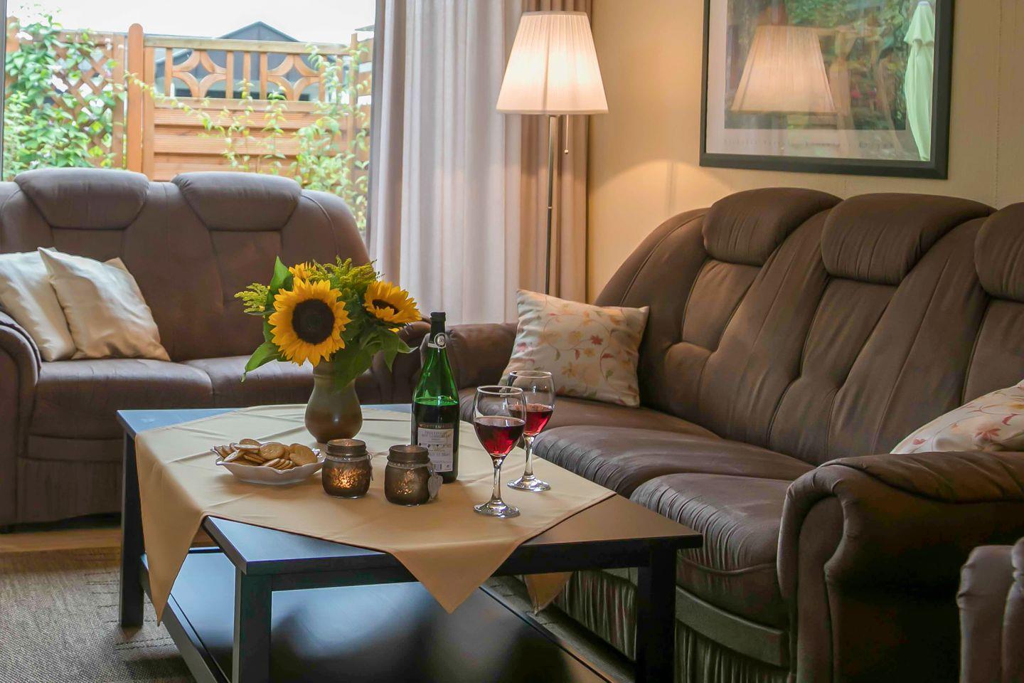 Jede unserer Ferienwohnungen verfügt über einen eigenen Eingang und eine private Terrasse, wo Du die frische Luft in vollen Zügen genießen kannst. Selbstverständlich bieten wir in allen Wohnungen kostenloses WLAN sowie einen Fernseher für entspannte Abende.