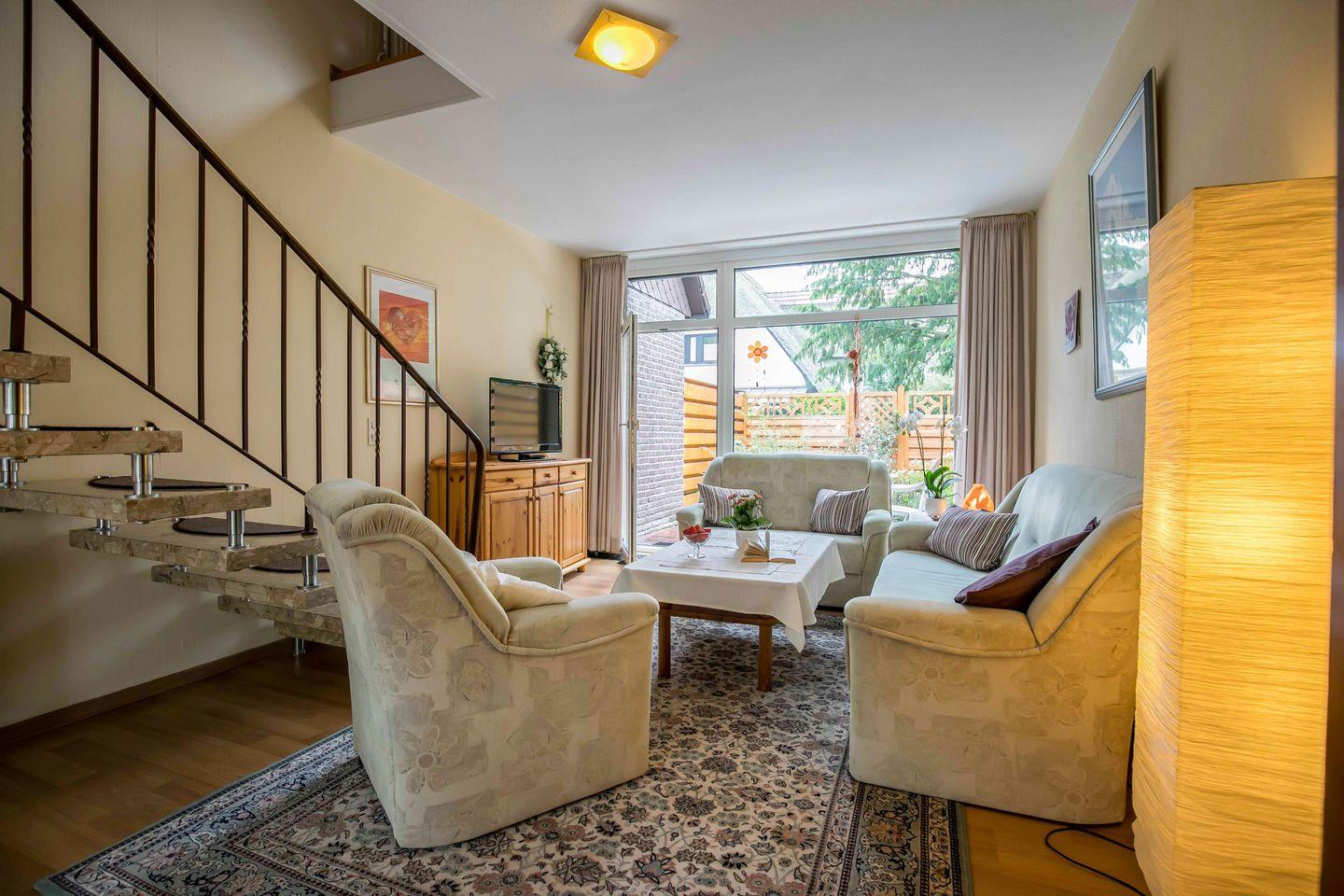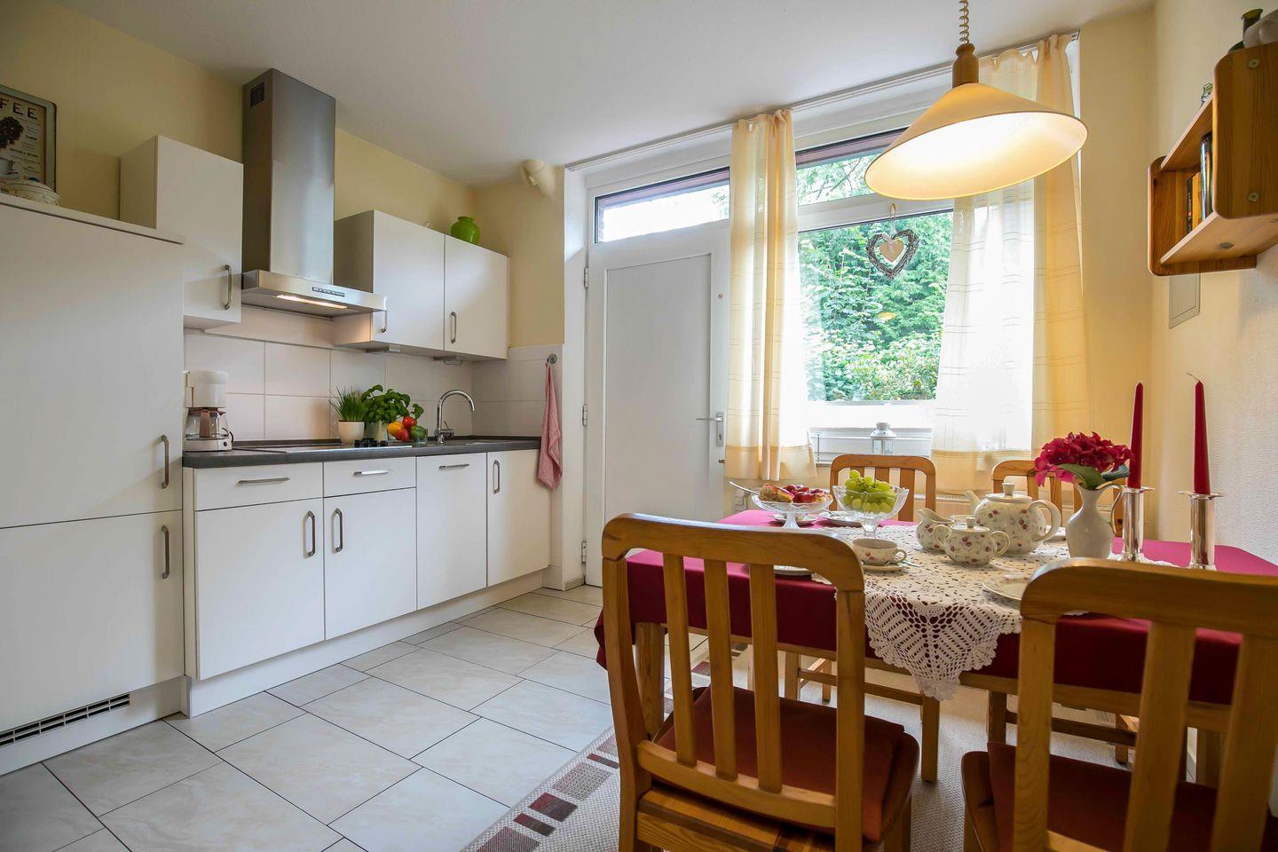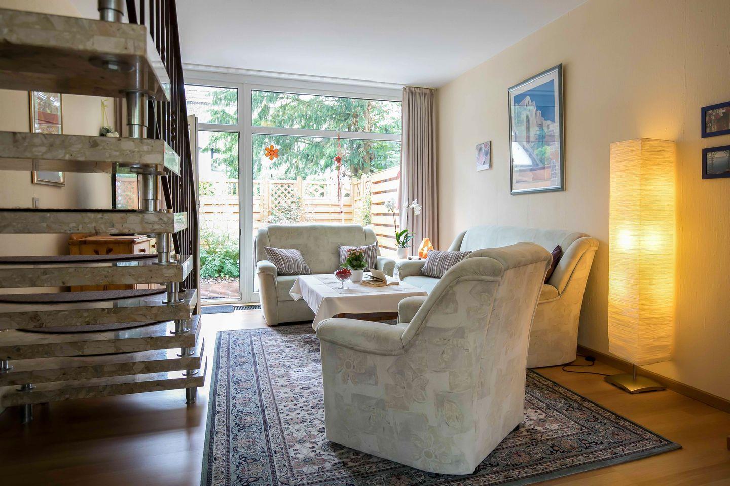 GEEIGNET FÜR MAX. FÜR 2 ERWACHSENE + 2 KINDER | Herzlich willkommen im Ferienhaus "An der Bäke" in Bad Zwischenahn! Jede Wohnung hat ein Wohnzimmer mit offener Küche, ein Schlafzimmer mit Doppelbett, ein Badezimmer und ein charmantes Dachzimmer für Kinder. Mit eigenem Eingang, Terrasse, WLAN und TV ausgestattet, garantieren sie einen angenehmen Aufenthalt. Die gut ausgestatteten Küchen, Fahrradschuppen und zentrale Lage im Ortskern ermöglichen eine flexible und entspannte Erkundung der Umgebung.