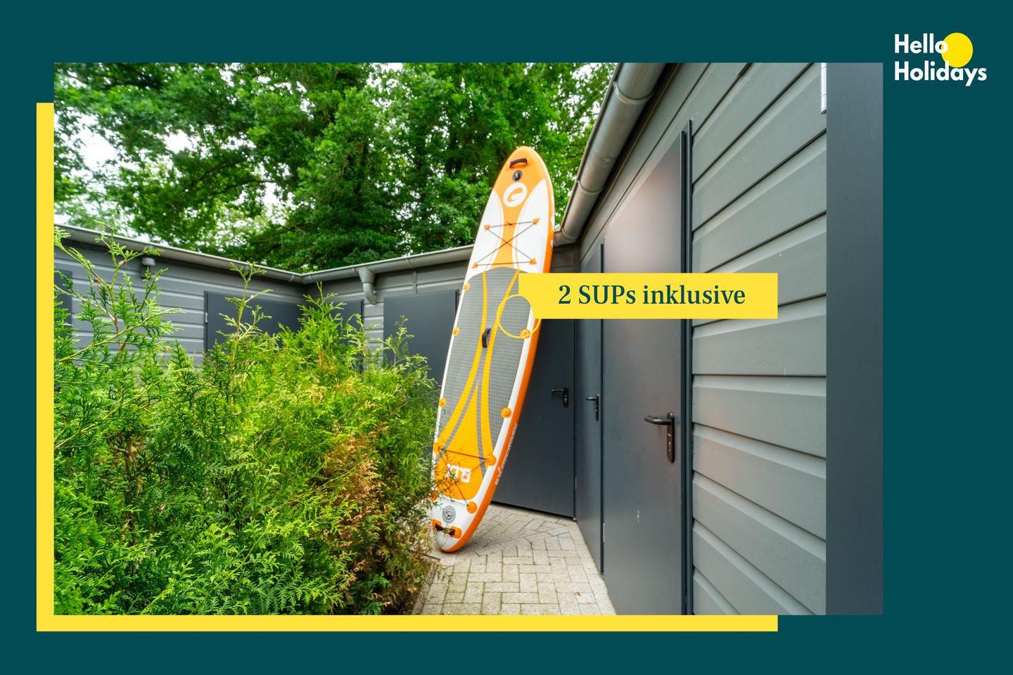 Besondere Highlights sind der windgeschützte Balkon, auf dem Du gemütlich sitzen und entspannen kannst, sowie das Kabuff, in dem Du Deine Fahrräder sicher verstauen und aufladen kannst. Zudem stehen Dir zwei kostenfreie SUP-Boards zur Verfügung.