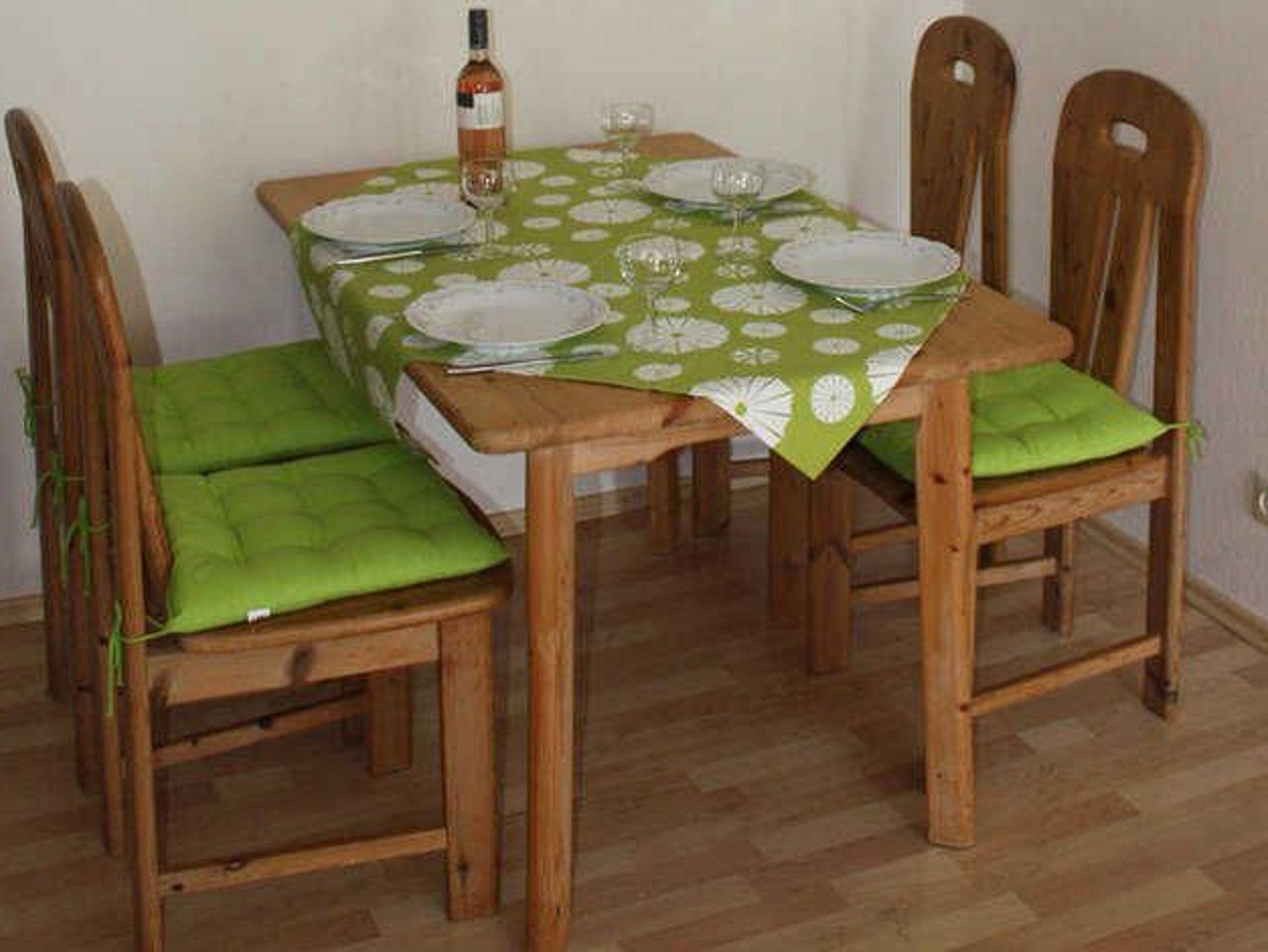 Die Ferienwohnung befindet sich im 1. und 2. OG eines ruhigen Wohnhauses und bietet für 2-5 Personen (4 Erwachsene) ausreichend Platz. Zur Wohnung gehören ein Südbalkon sowie eine Garage. Der Wohnraum ist hell und groß, sodass Sie es sich auch bei schlechtem Wetter gemütlich machen können. Die Essecke gehört zum Wohnbereich, schließt sich aber direkt an die Küche an. Die Küche ist mit Kühlschrank, Mikrowelle, Spülmaschine, Kaffeemaschine und Toaster sehr gut ausgestattet. Das Schlafzimmer mit einem großen Doppelbett ist geräumig und ein großer Schrank bietet viel Stauraum. Ein Kinderbett ist vorhanden. In dem Zimmer im Dachgeschoss stehen zwei Einzelbetten sowie ein zweites TV-Gerät.