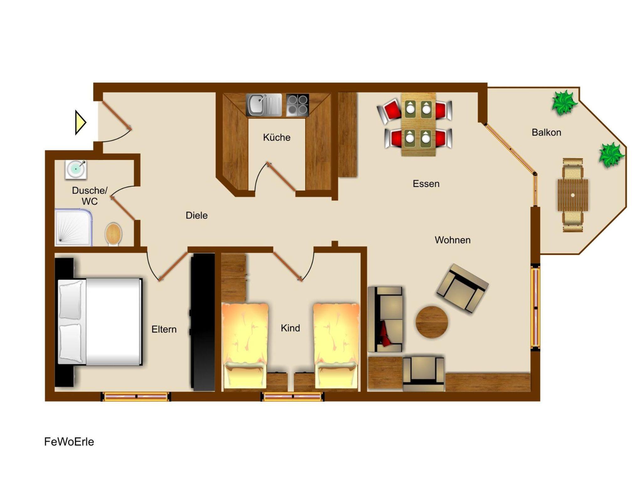Das zweite Zuhause muss die erste Wahl sein: Familien mit Kindern brauchen Platz, Komfort und Sicherheit - all dies inklusive Traumaussicht auf den umliegenden Schwarzwald finden Sie in unseren Erle-Ferienwohnungen. Wohnung mit Wohn/Esszimmer, zwei getrennten Schlafzimmer, Küche mit Geschirrspüler, Bad mit Dusche/WC, Balkon