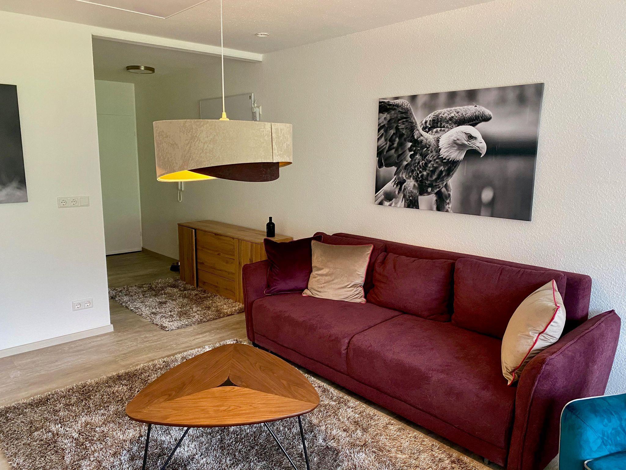 Das Appartement „Vogelkoje“ ist eine modern eingerichtete und komplett sanierte 3-Zimmerwohnung (56 m2) für bis zu 4 Gäste – ideal für Familien. Das Wohnzimmer hat ein bequemes Schlafsofa, und das Schlafzimmer ist mit einem Boxspringbett ausgestattet. Im zweiten Schlafzimmer steht ebenfalls ein Schlafsofa. Bettwäsche und Handtücher werden gestellt. Zum Appartement gehören Infrarot-Heizungen, eine Küche mit Tisch und Stühlen, ein Süd-Balkon, Kabel TV und WLAN sowie ein Stellplatz in der Hausgarage. Gäste erhalten außerdem kostenlos die Schwarzwald Plus-Karte für über 80 Urlaubserlebnisse.