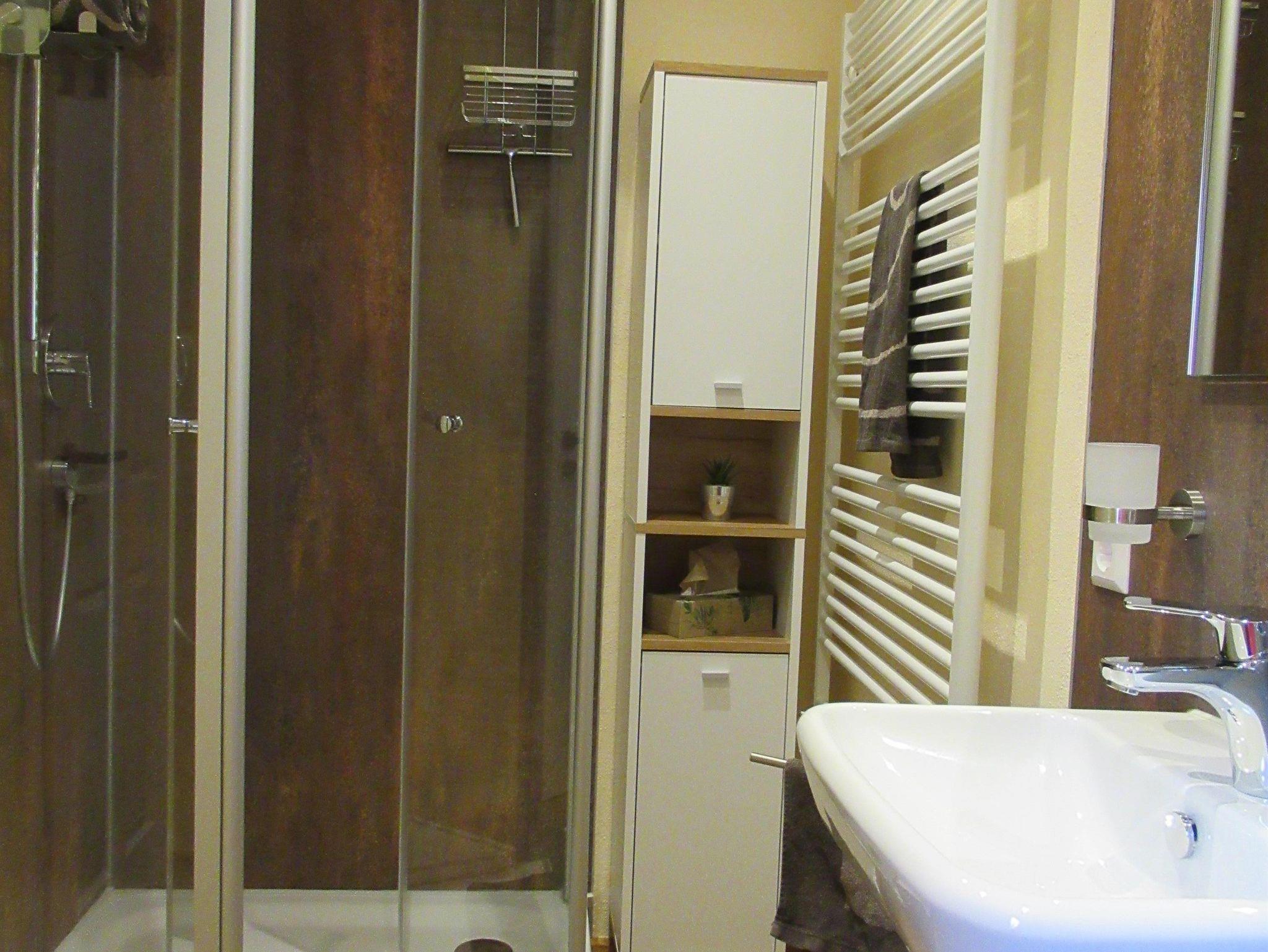 Auf ca. 45 m² bietet die Wohnung Platz für bis zu 5 Personen und ist ideal für Paare, Familien oder Aktivurlauber geeignet. Zwei separate Schlafzimmer (Doppelbett und Etagenbett), ein gemütliches Wohnzimmer mit Schlafcouch sowie ein modernes Bad mit großer Dusche sorgen für Komfort und Wohlfühlatmosphäre. Die voll ausgestattete Küche lässt keine Wünsche offen – perfekt für gemeinsame Mahlzeiten nach einem aktiven Tag in der Natur. An warmen Sommertagen bietet sich der großzügige Balkon zum Relaxen an.