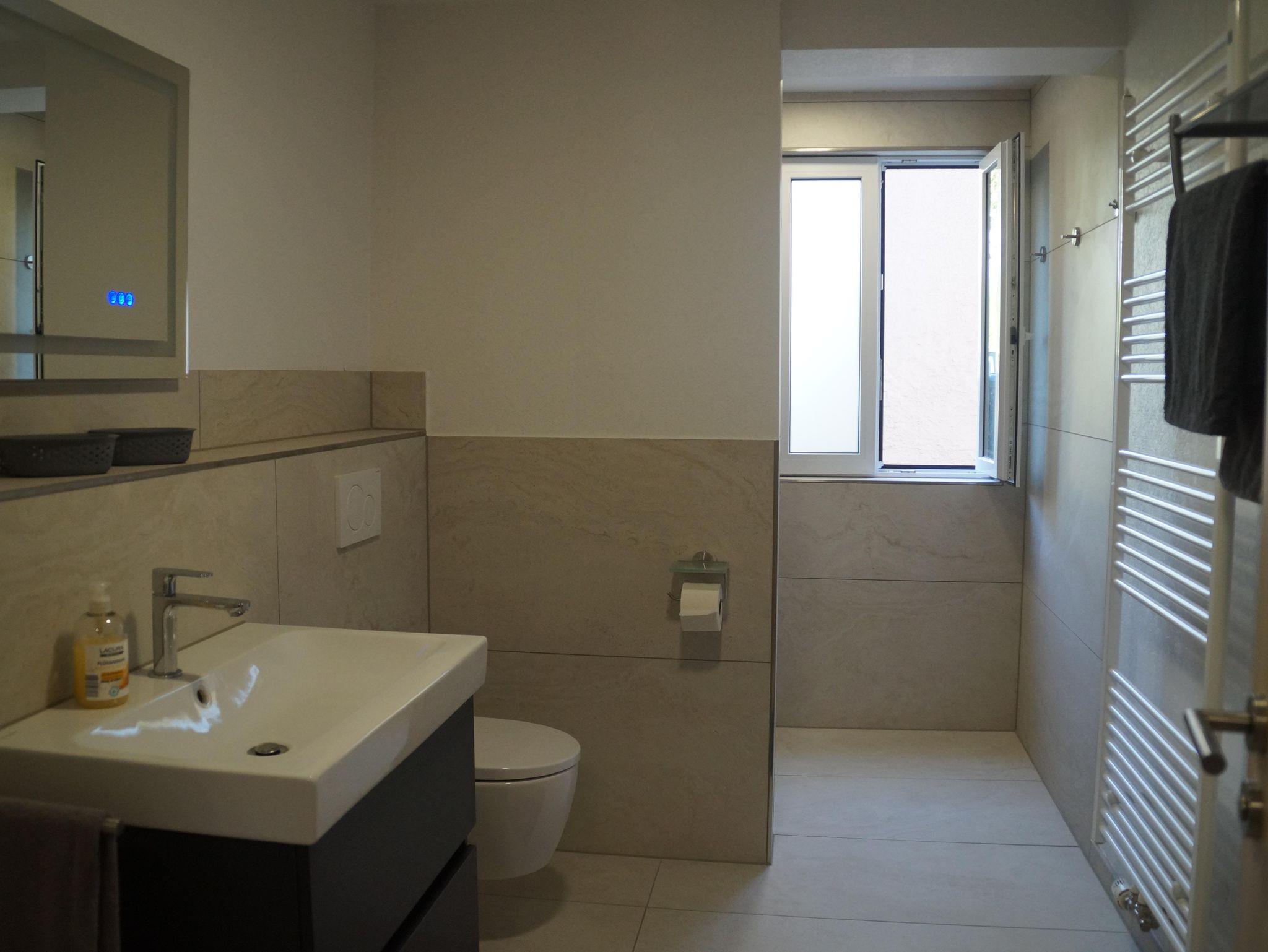 Die Wohnung verfügt über ein großes Wohnzimmer mit 2 Betten für Kinder oder Jugendliche, ein Schlafzimmer, eine voll ausgestatte Küche und ein Badezimmer mit begehbarer Dusche und WC.