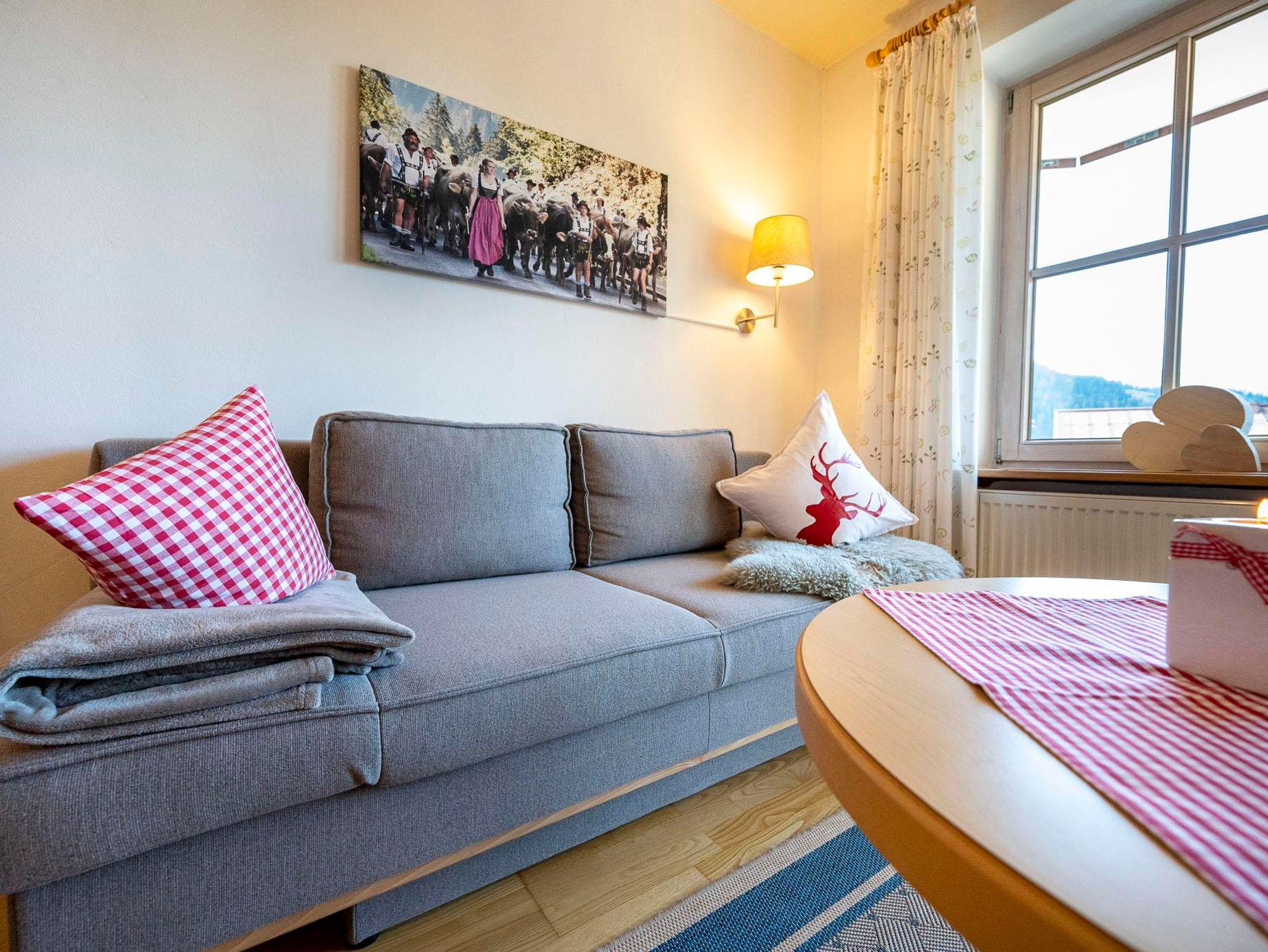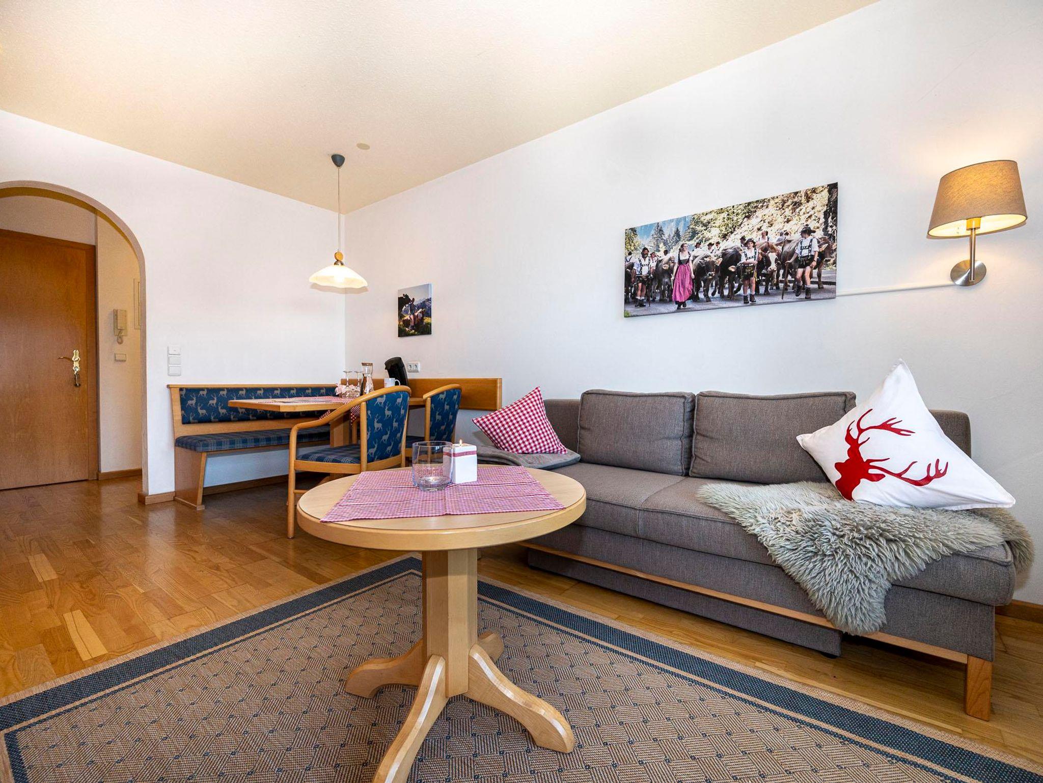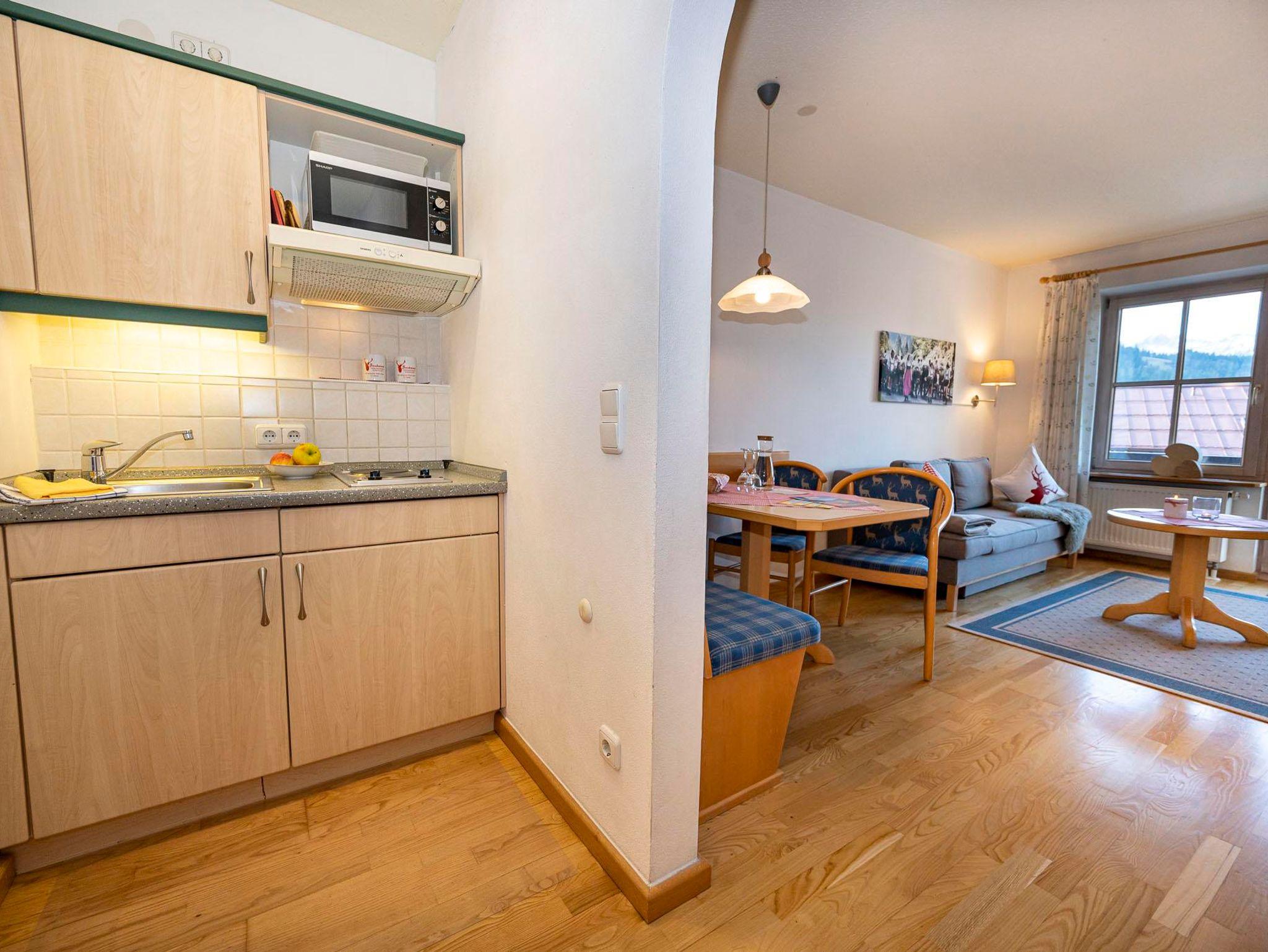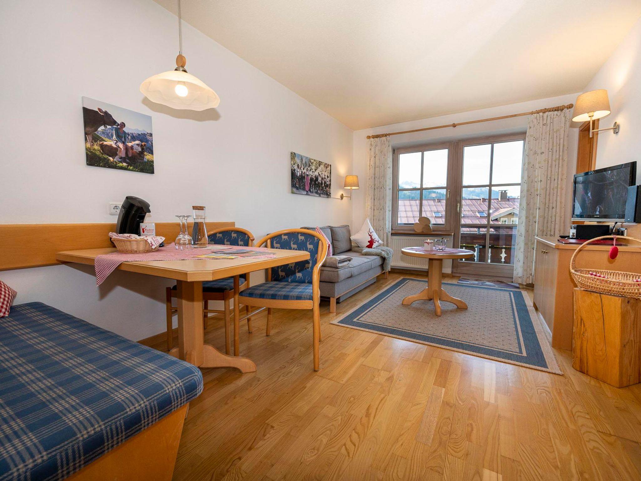Wohlfühlwohnung Tanne im 1 OG, 35qm für 2 Pers. mit sep. Schlafzimmer/Schranksafe. Wohnraum mit Südbalkon (mit Möblierung)freien Blick in die Alpen,im gemütlichen Landhausstil eingerichtet. Schöner Wohnbereich mit Sitzgarnitur und Essecke. Küche mit Mikrowelle, Kühlschrank mit Gefrierfach und zwei Plattenherd. Bad mit Du/WC und Föhn. Sat-TV, Flachbild, Hifi-Anlage, WLAN, Nicheraucherwohnung