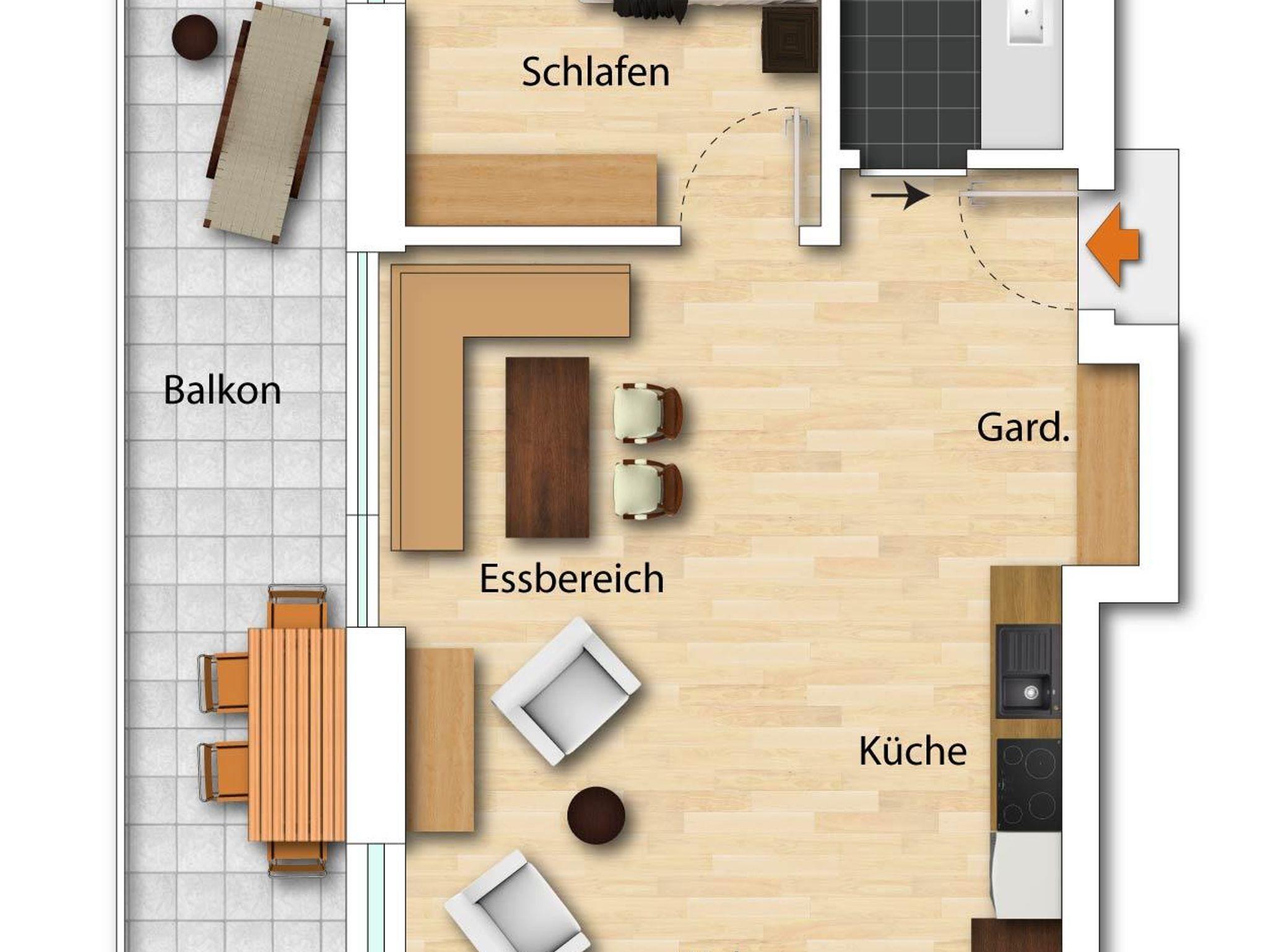 • offene Küche mit allem was es braucht (Spülmaschine und Backofen)
