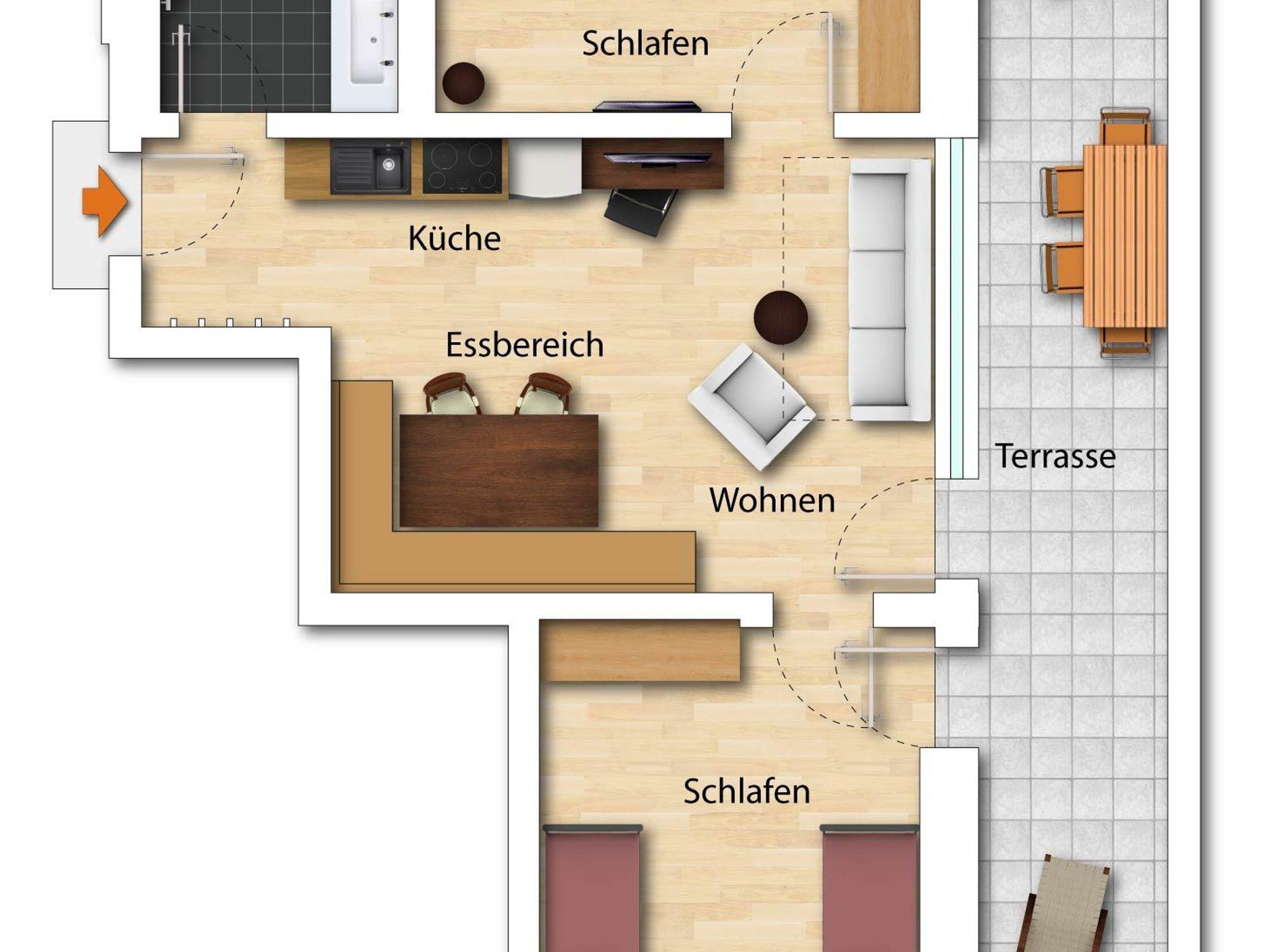 • großer Ostbalkon und sonnge Süd-Dachterrasse (möbliert)