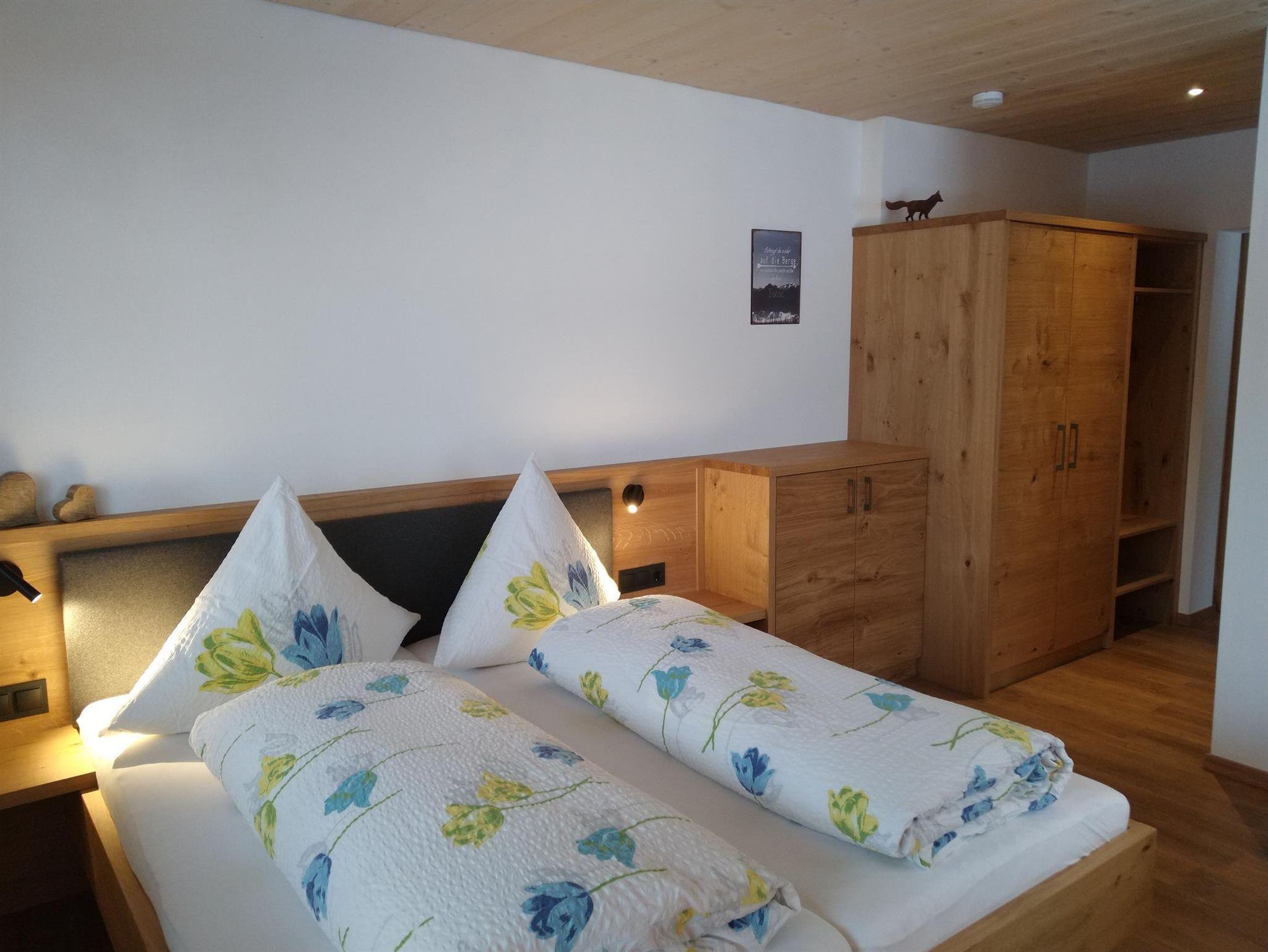 Unsere neu renoviertes Appartement Fuchs freut sich auf Sie! Es befindet sich in der Ersten Etage mit einem großen Südbalkon der den Blick auf die Berge freilegt. Das Appartement ist mit einem kombinierten Wohn- Schlafraum mit einer gemütlichen Sitzecke und Doppelbett ausgestattet. Eine kleine Küche befindet sich ebenfalls im Appartement. (Kühlschrank, 2 Herdplatten, Waschbecken) Das Badezimmer ist mit einer Dusche/WC und Föhn ausgestattet. Bettwäsche und Handtücher liegen für Sie bereit. Gerne können Sie unseren Brötchen- bzw. Getränkeservie nutzen.