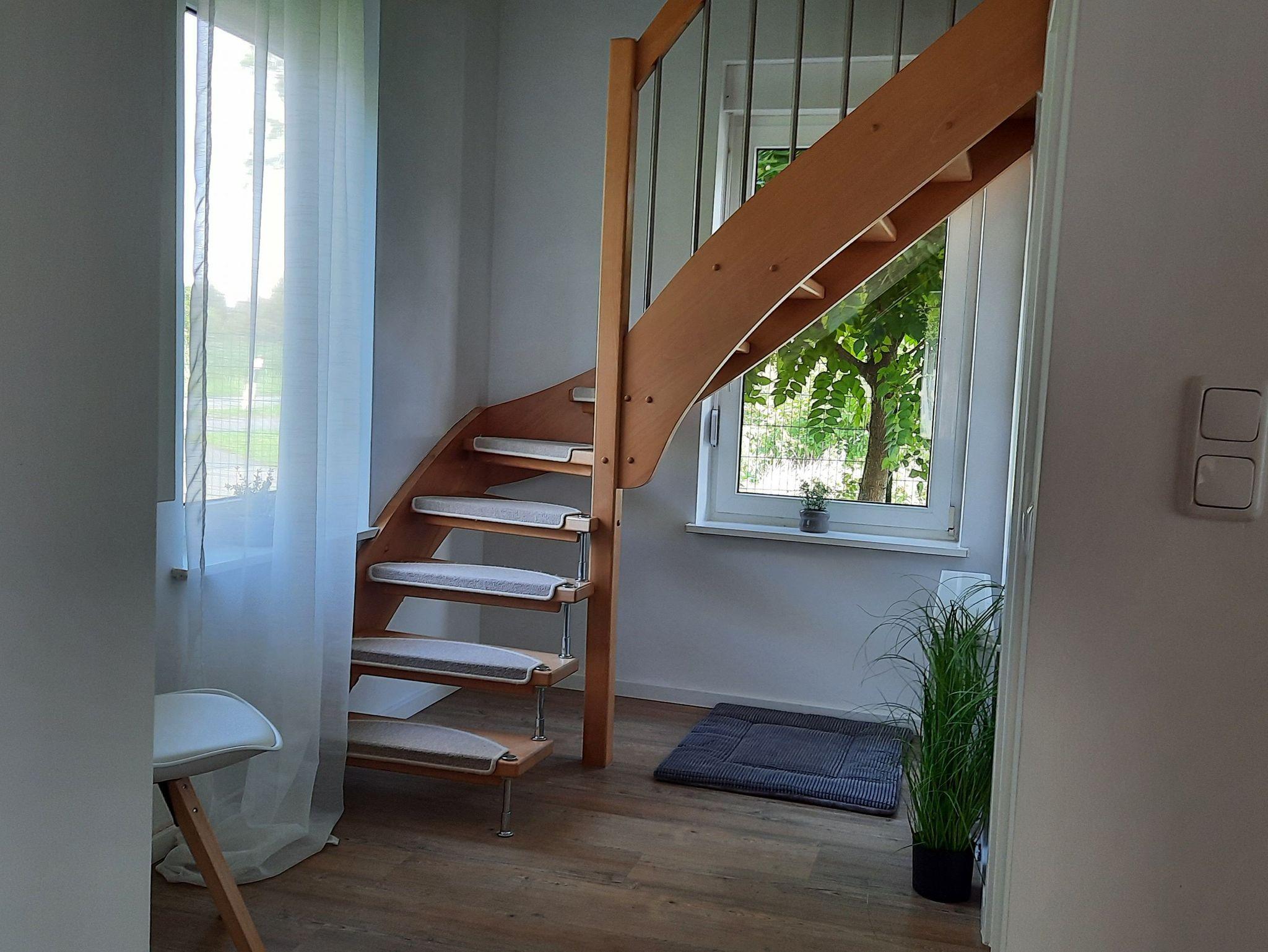 Die 83 qm große Unterkunft besteht aus einem Wohnzimmer im OG, einer voll ausgestatteten Küche, 2 Schlafzimmern und 1 Badezimmer mit Badewanne und Dusche und bietet Platz für 4 Personen. Zur Ausstattung gehören außerdem Wi-Fi, ein Smart-/ Satelliten-TV sowie eine Waschmaschine. Unser Ferienhaus bietet einen komplett eingezäunten privaten Außenbereich mit Garten und Terrasse. Neben dem Haus befindet sich ein Schuppen für Fahrräder. Hier können auch E-Bikes aufgeladen werden.