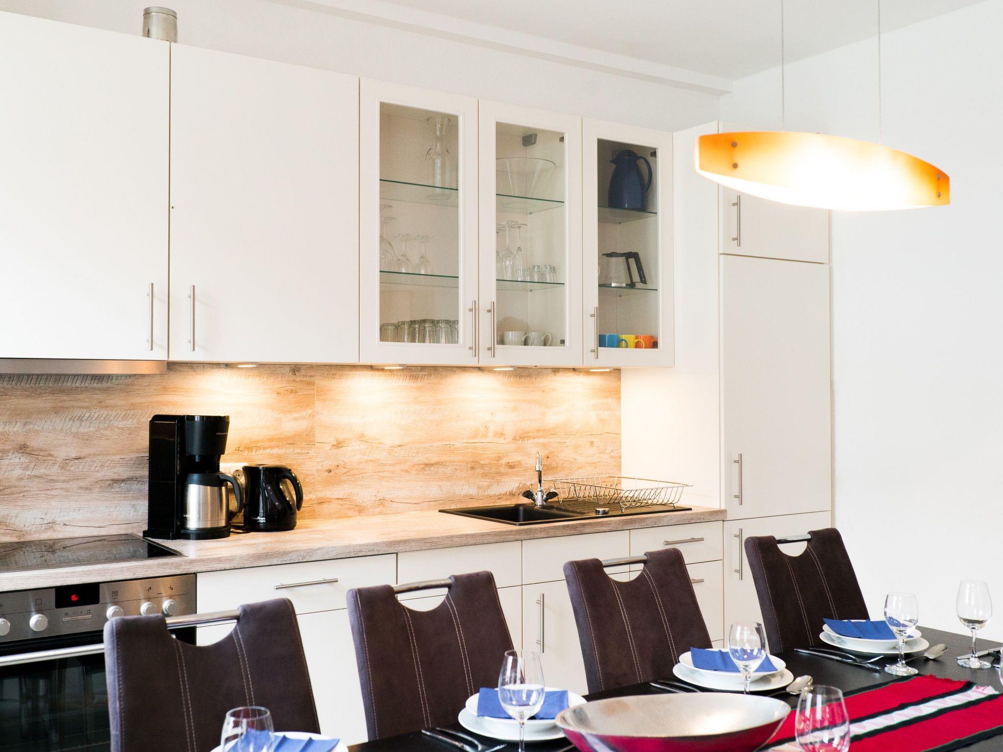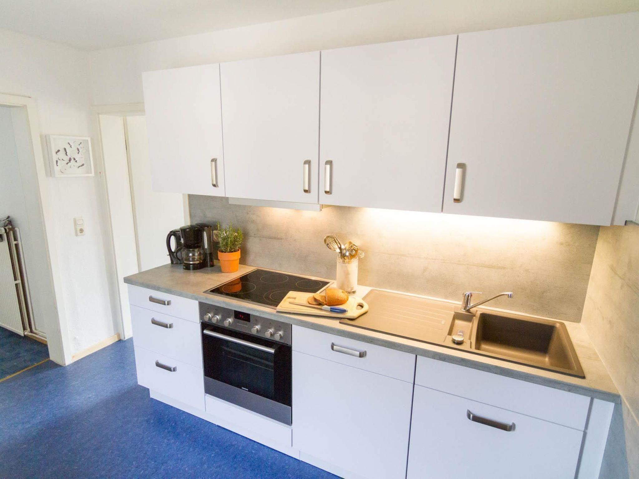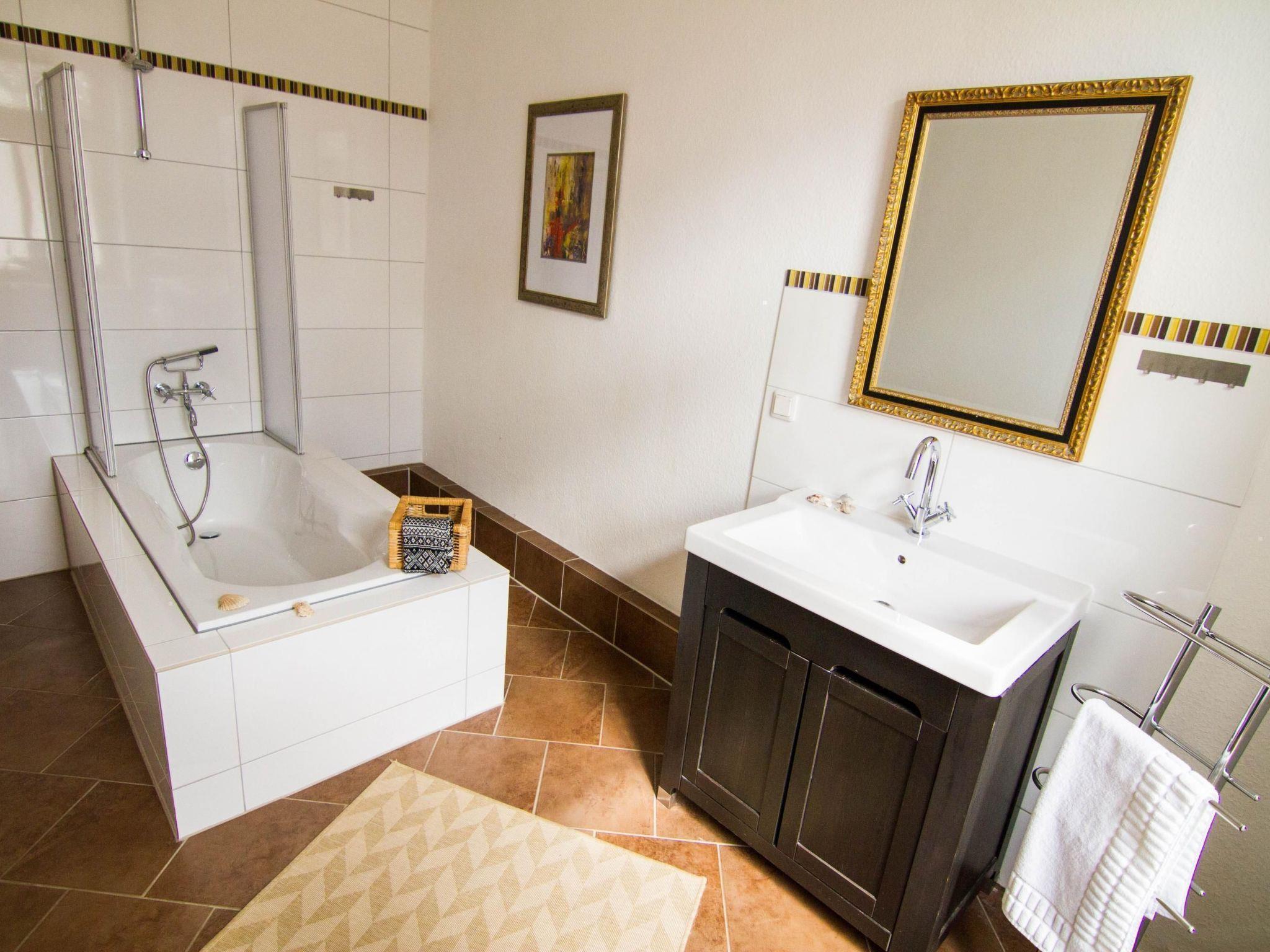 The big house has a large hallway on the ground floor with old wooden stairs leading to the upper floor, a big living room with satellite TV, a DVD player and a library, a second smaller living room, a first bedroom with a double bed (140 x 200cm, one mattress) and a second bedroom with a double bed (180 x 200cm, two mattresses). Next to it there is a modern bathroom with a shower bath. The modern kitchen with a big dining table for 11 people is equipped with an oven, ceramic hob, microwave, fridge-freezer, dishwasher, coffee machine, toaster, stereo system and a full set of crockery and cutlery. There are also two separate toilets. The first floor comprises a very big bedroom with a double bed (180 x 200cm, two mattresses) and an additional bed, a children’s bedroom with a bunk bed (each 90 x 200cm) and table football, while the third bedroom has a double bed (140 x 200cm, one mattress). The modern shower room has a WC and an infrared cabin (similar to a sauna). A sofa bed can be used for a twelfth person on request. The big apartment provides a large living room with a suite, a TV, a DVD player and a little library. The dining room provides a big table for eight people. The modern built-in kitchen (fitted in November 2015) is equipped with a fridge-freezer, an oven, a ceramic hob, a dishwasher, a microwave, a coffee machine and a toaster. The first bedroom is furnished with a big double bed (180 x 200cm), the second bedroom has a double bed (140 x 200cm), the third has a double bed (140 x 200cm) and the fourth a bunk bed (each 90 x 200cm). The first bathroom is fitted with a shower, WC and washbasin, the second with a bath, washbasin and a separate toilet. The living room, dining room and three bedrooms face south.