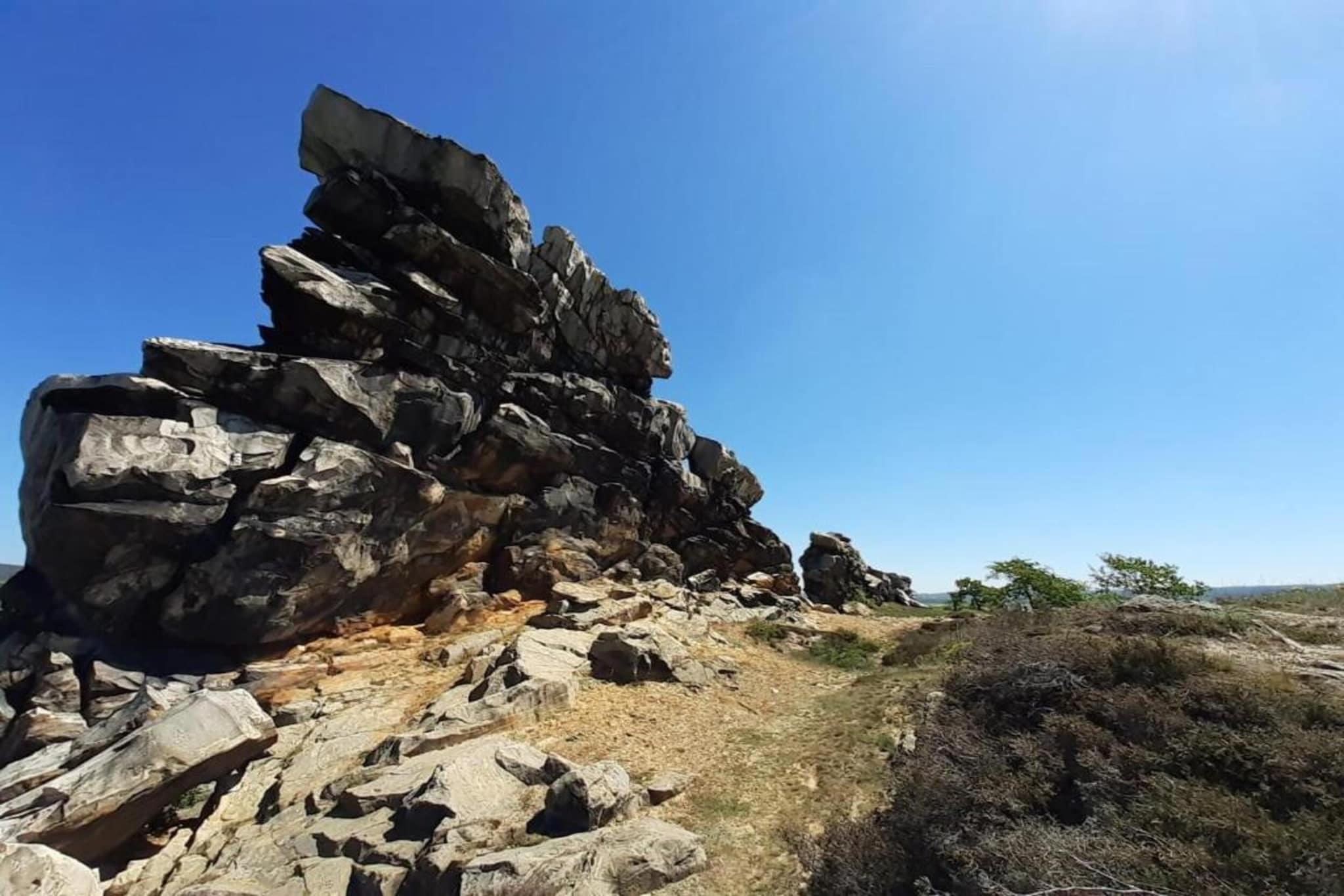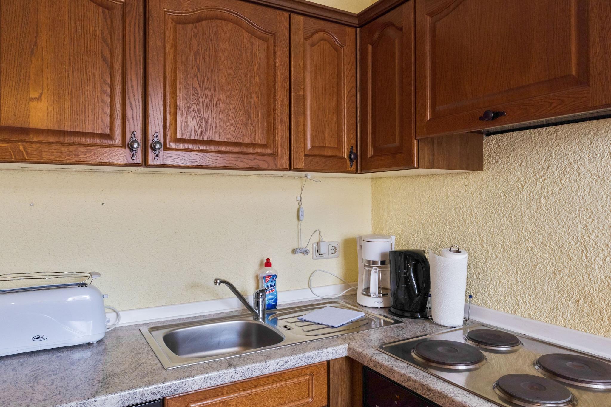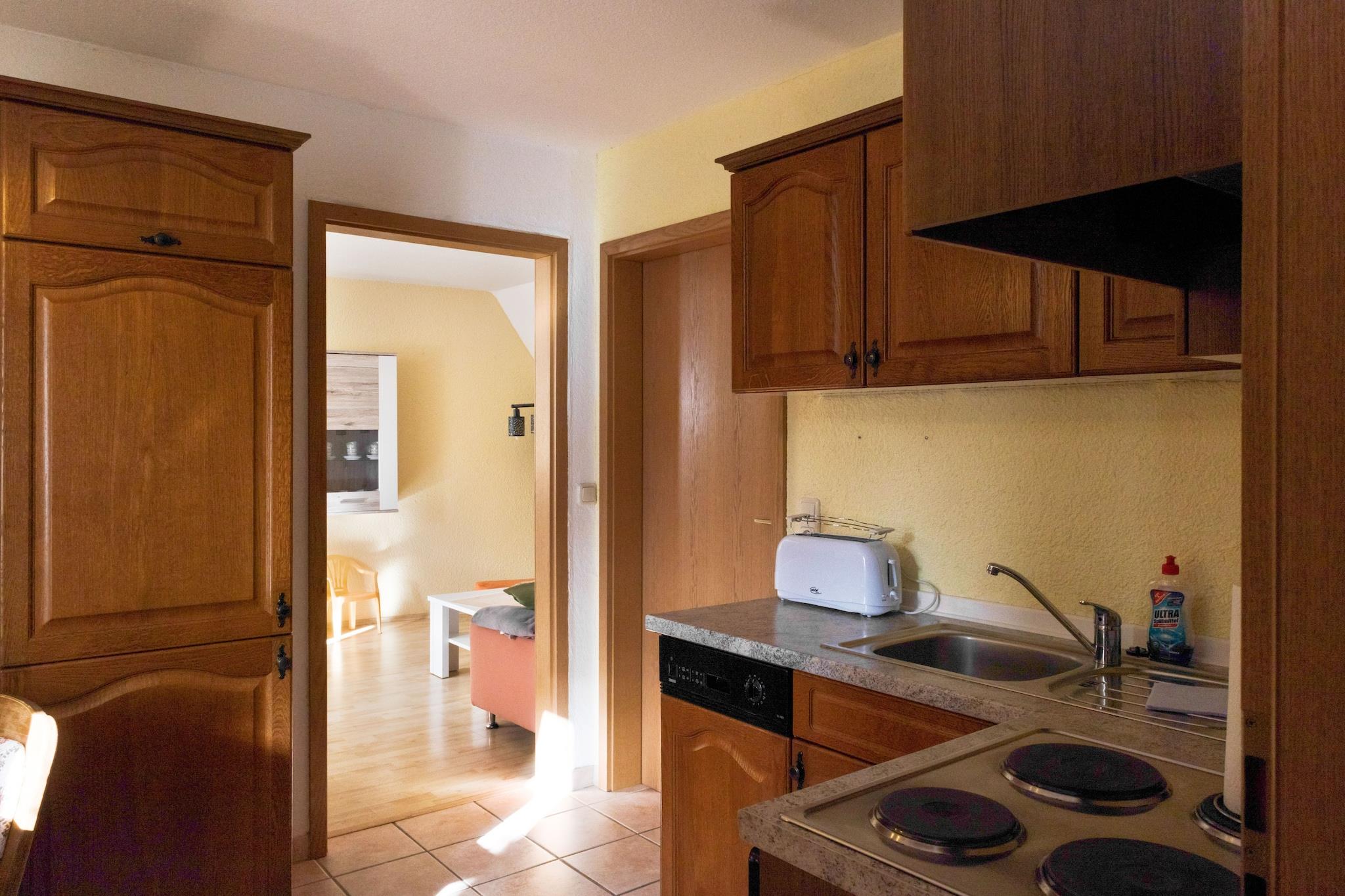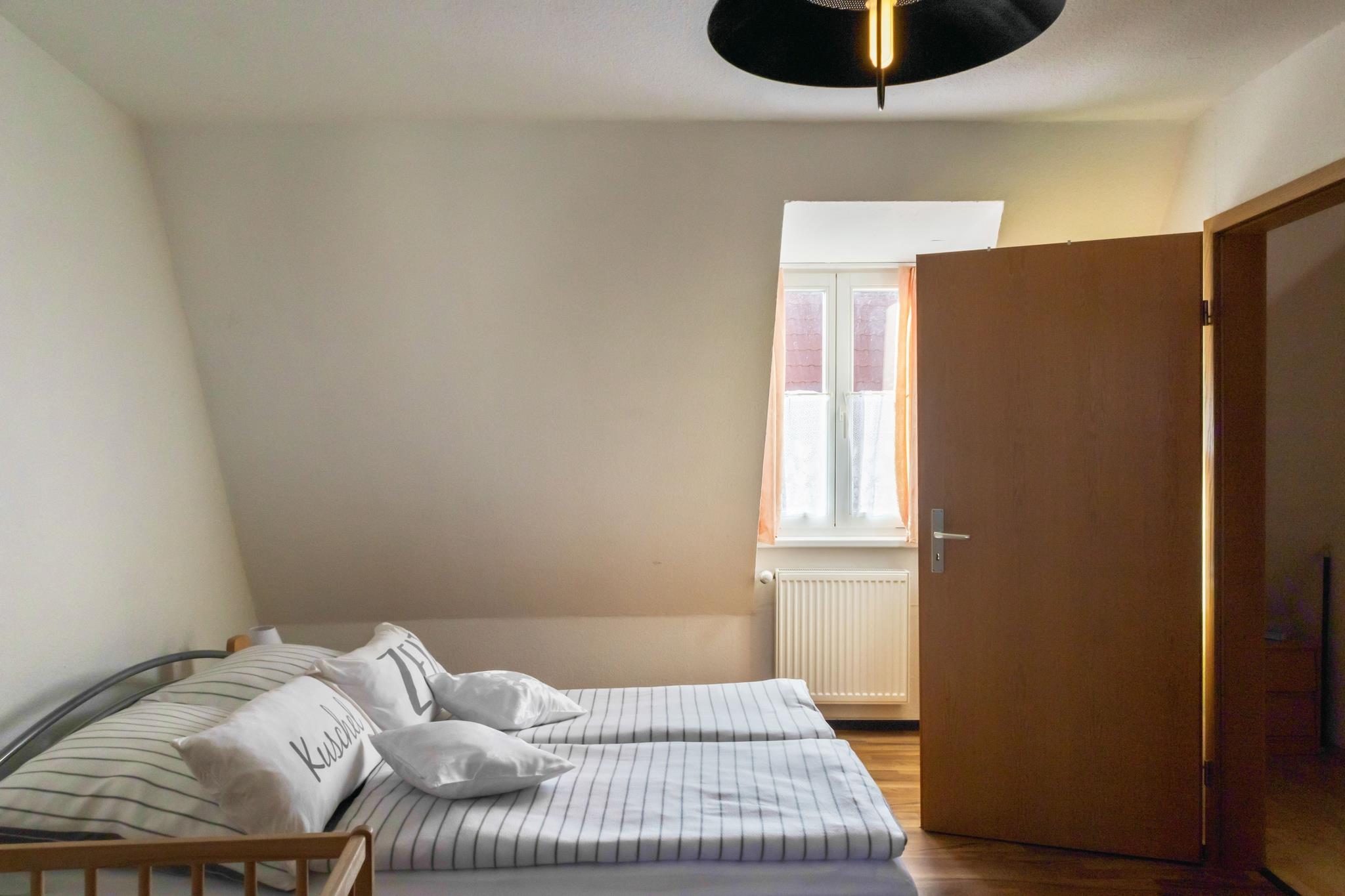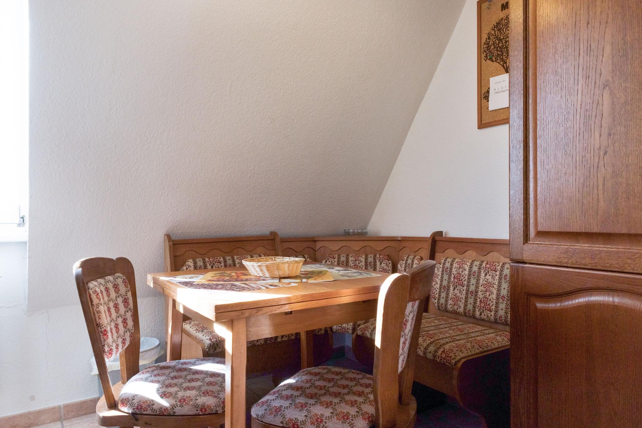 Perfekt for familier og kjæledyr Denne leiligheten i andre etasje ligger bare noen skritt fra Ballenstedt sentrum, og blander praktiske fasiliteter med koselig sjarm. Den har en komfortabel stue med satellitt-TV og enkel sovesofa, samt et kjøkken utstyrt med elektrisk komfyr, stekeovn, mikrobølgeovn, kjøleskap med fryser, brødrister, vannkoker og filterkaffemaskin. Et moderne bad med dusj, hårføner, toalett og servant sørger for daglig enkelhet, og sentralgassoppvarming hele veien holder hele rommet varmt og innbydende. Gjestene vil sette pris på gjennomtenkte tilleggsutstyr som oppvaskmaskin, komfyr, strykebrett og strykejern, pluss festspill for avslappende kvelder i. Utenfor kan du nyte nærhet til natur og fritid: skogsstier (400 m), aktiviteter ved innsjøen (2 km), ridning (8 km) og golf (6 km) er innen rekkevidde. Lokale fasiliteter – inkludert restauranter, butikker, offentlig transport og et bakeri – er alle innen 300 m, mens sykkelutleie og turisttjenester bidrar til områdets attraktivitet. Med alt fra skiløyper til fiskevann i nærheten, og en kjæledyrvennlig policy som får lodne følgesvenner til å føle seg hjemme, er denne leiligheten en praktisk og koselig utskytningsrampe for alle årstider i Harz-regionen