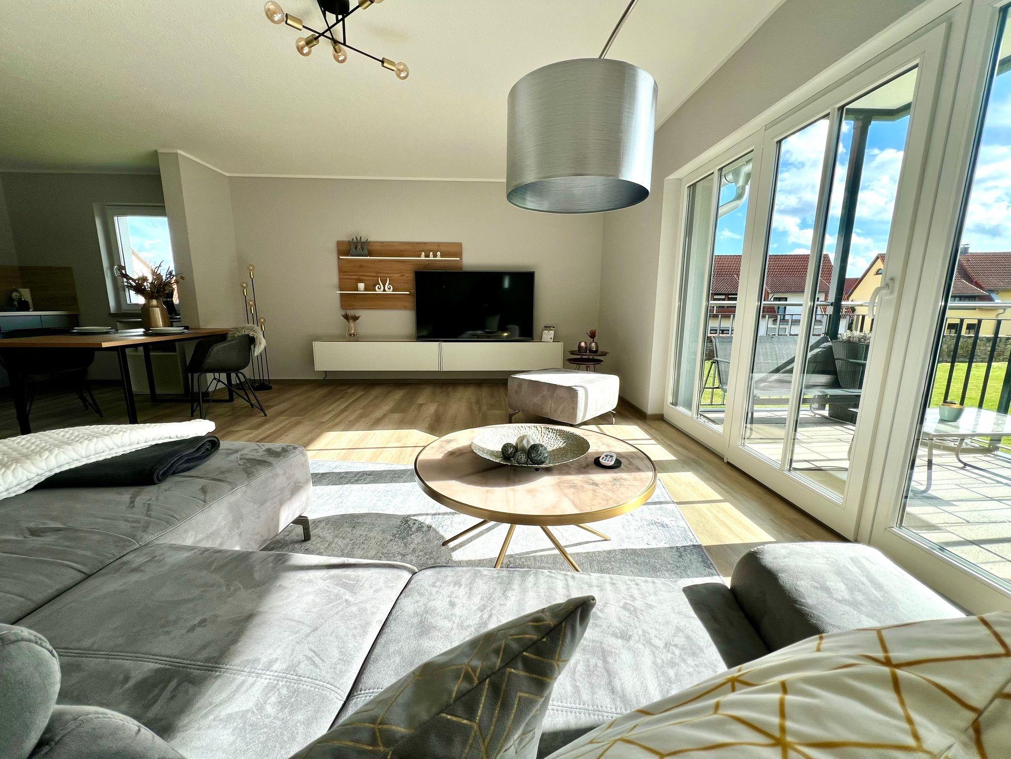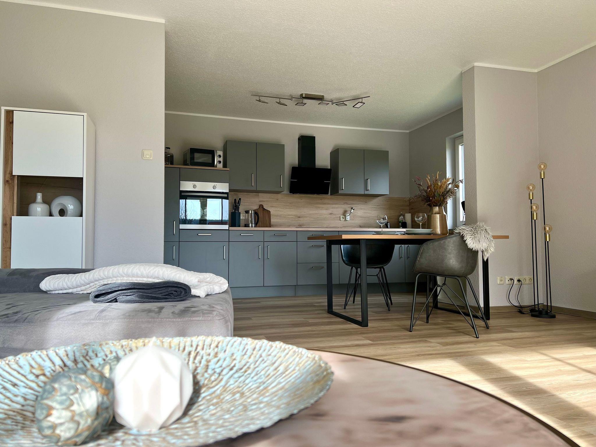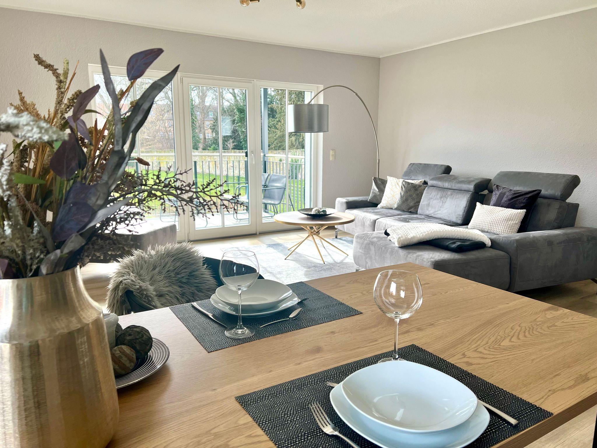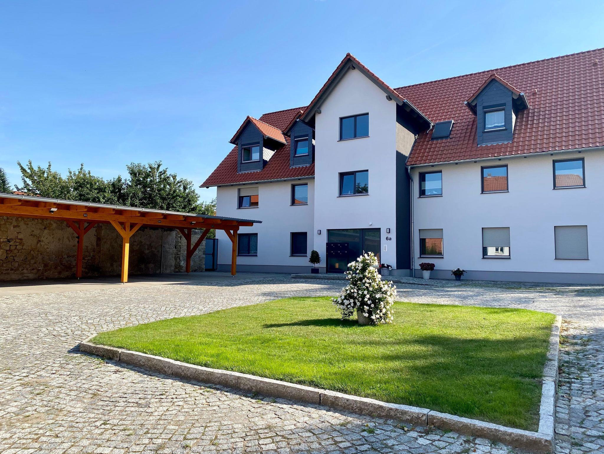 Das Haus ist barrierearm (Fahrstuhl und extrabreite Türen) und zu jeder Wohnung gehört ein eigenes Carport. WLAN ist inklusive.