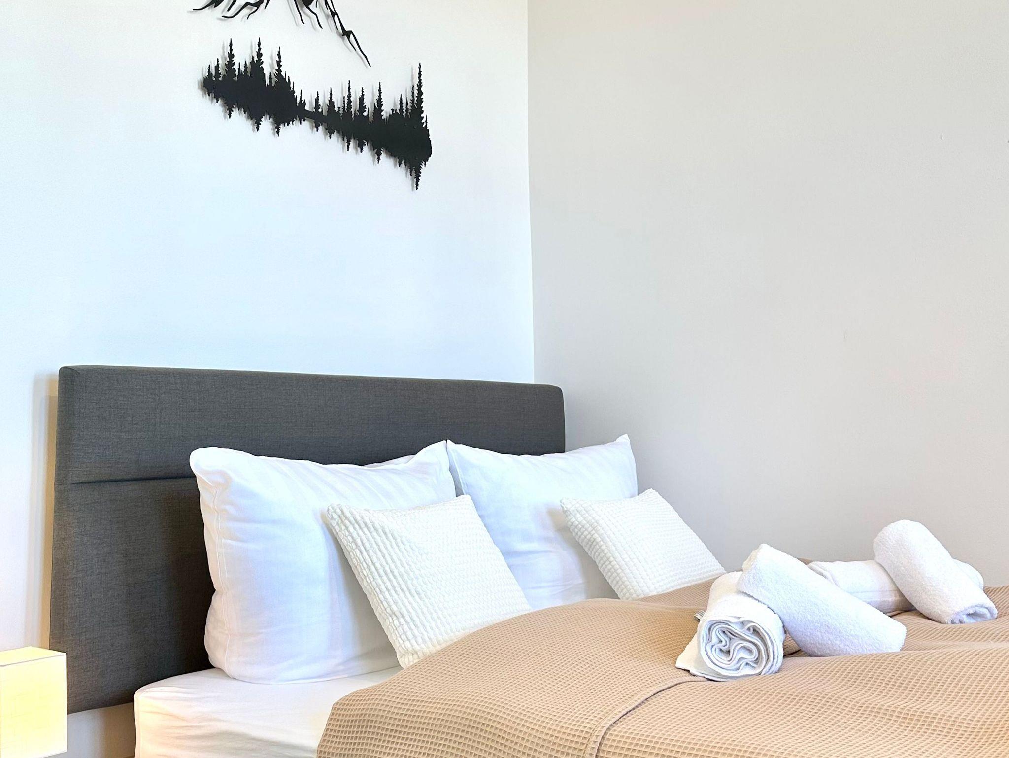 Im kombinierten Wohn-und Schlafzimmer erwartet Sie nach einem erlebnisreichen Tag ein bequemes Doppelbett und ein gemütliches Schlafsofa. In der rundum sorglos eingerichteten Küche stehen besondere Annehmlichkeiten wie eine Kapselmaschine, ein SODASTREAM und eine Auswahl an Getränken bereit.