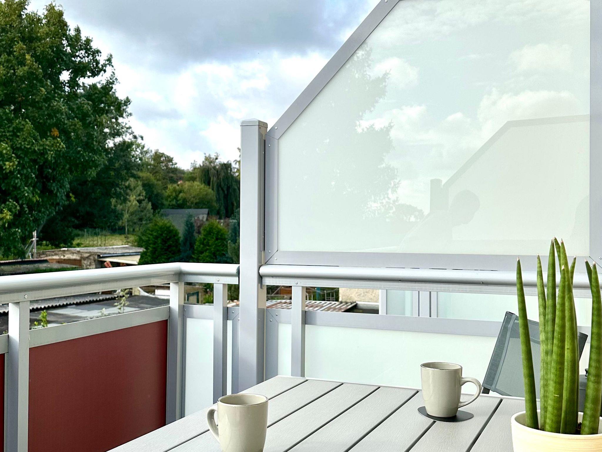 Bei einem Kaffee oder Tee am Morgen genießen Sie einen herrlichen Ausblick ins Grüne auf unserem Balkon mit Südausrichtung.