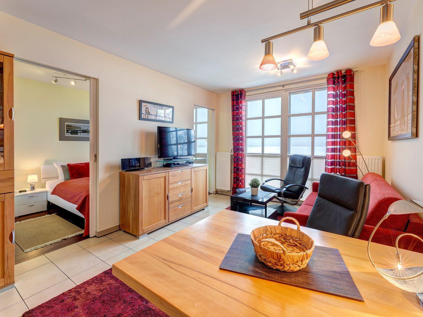 Wir freuen uns, Sie in dieser komfortablen 2-Raum-Wohnung begrüßen zu dürfen, ideal für einen Erholungsurlaub zu zweit. Das Appartement verfügt über einen Wohn-/Essbereich mit einem vollwertigen Schlafzimmer sowie offene Küche und Bad.