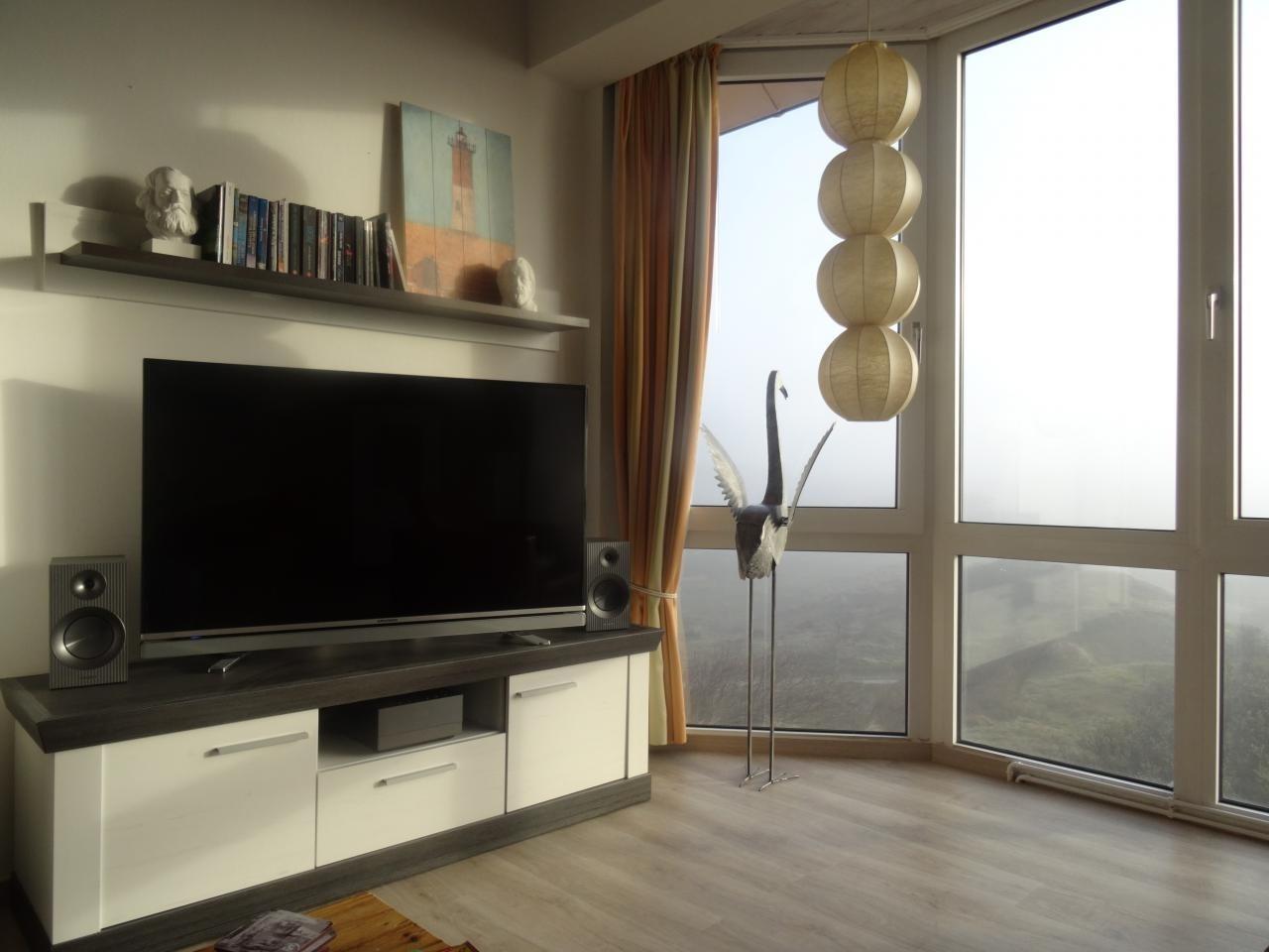 Die FeWo besticht durch Ihre Einrichtg. sowie das großzügige Panoramafenster und einen Balkon mit schöner Aussicht auf die Dünenlandschaft. Die Küche ist vollständig einger. (4-Platten-Cerankochfeld, Geschirrspü., Mikrow., Senseo-Duo-Kaffeem. etc). Für einen gemütl. Abend steht Ihnen ein TV/125 cm einschl. Stereoanlage mit CD/DVD zur Verfügung. Bettwäsche und Handtücher sind i. P. enthalten.