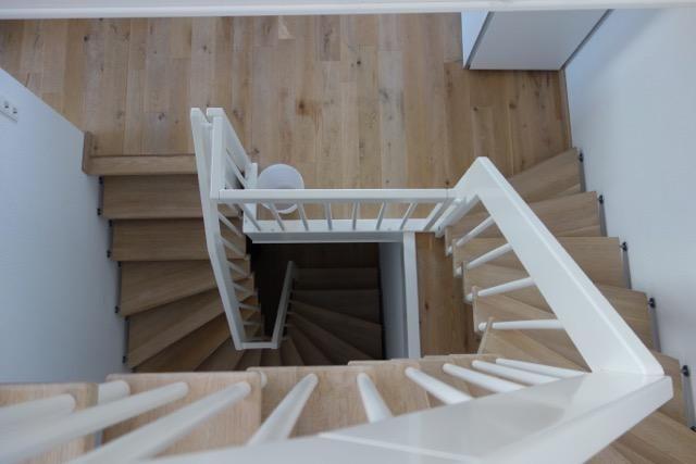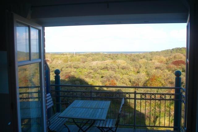 Zwei Schlafräume und das WC befinden sich im Erdgeschoss. Der Wohnraum ist mit einer weißen bulthaup-Küche ausgestattet. Der Blick vom Wohnzimmertisch aus geht über die Dünen auf das offene Meer. Im Obergeschoss hat man einen herrlichen Blick auf das Meer. Hier kann man auf einem Futon schlafen.