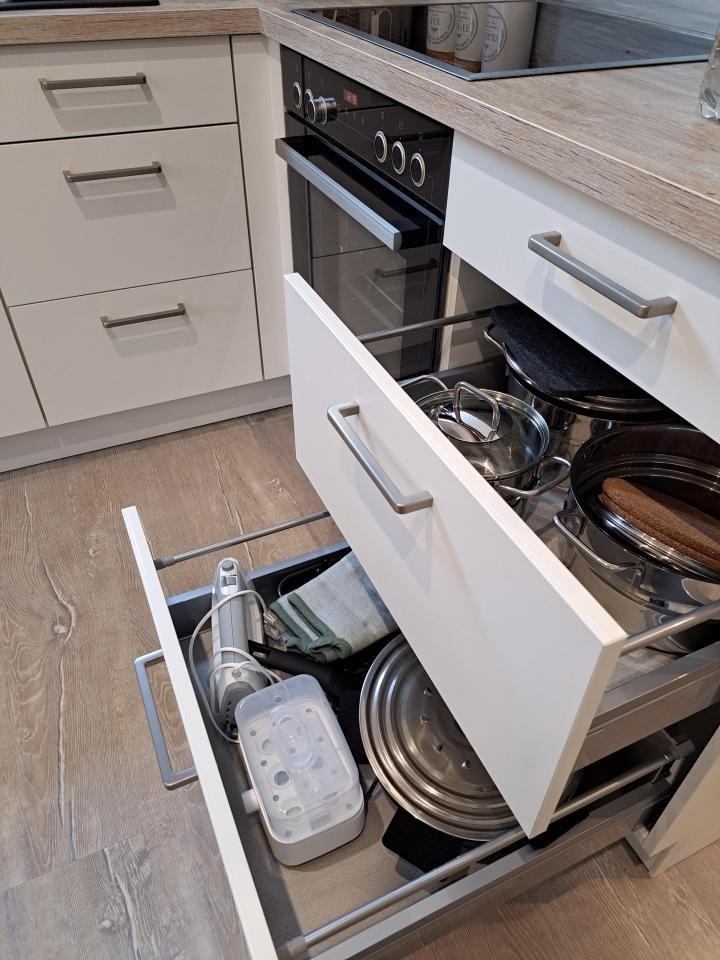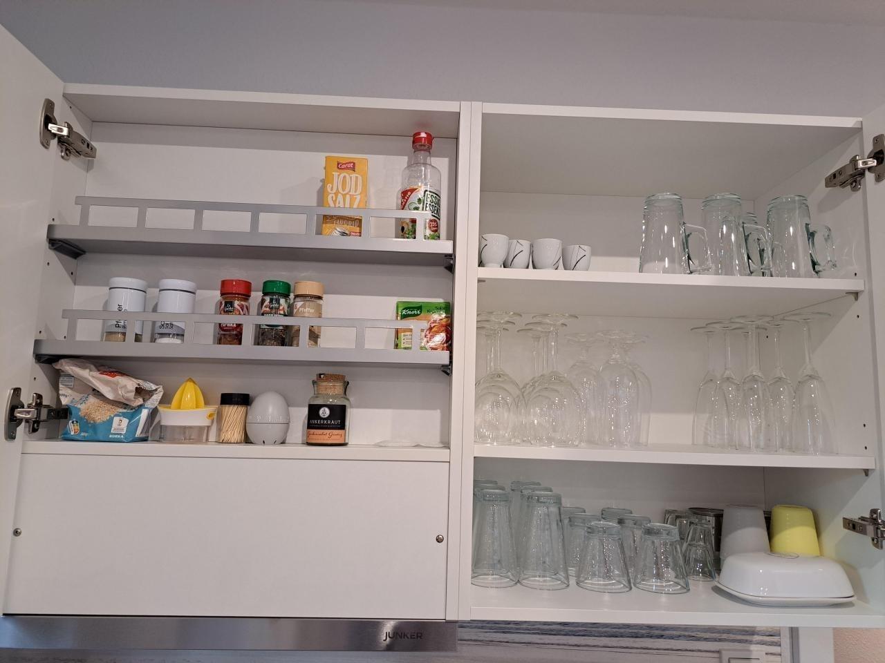 - Einbauküche mit Spülmaschine, Ceranfeld, Backofen, Kühlschrank, Eisfach, Mikrowelle & allen nötigen Küchenutensilien und -geräten.
