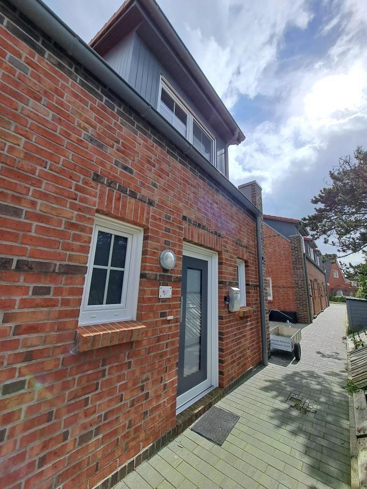 Unsere moderne Ferienwohnung (Doppelhaushälfte) liegt mitten im Westdorf, zentral gelegen, dennoch ruhig in zweiter Reihe, ca. zwei Gehminuten vom Strand entfernt.