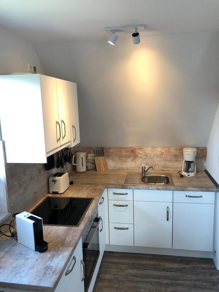 4-5 Pers. # 50qm # 2 Schlafzimmer + Schlafsofa # Duschbad/WC # Balkon # WLANüberall, Smart-TV, Bluetooth-Box # Fußbodenheizung. FeWo2 befindet sich im Dachgeschoss mit Nord-Ost-Balkon. Sie verfügt über 2 separate Schlafzimmer - jeweils mit Doppelbett (180x200) und Kleiderschrank. Einmal mit zweitem TV-Flatscreen. Das Sofa bietet eine Schlaffunktion (120x200) im Wohnbereich. Neben einem hochwertigen Duschbad bieten all unsere Wohnungen eine Komplett-Küche: Spülmaschine # Backofen # Mikro # Kühlschrank/Eisfach # Nespresso & Teebar