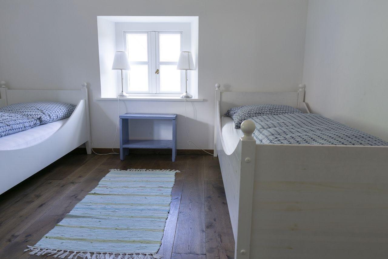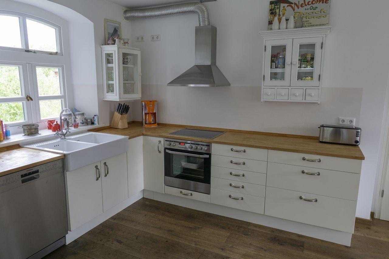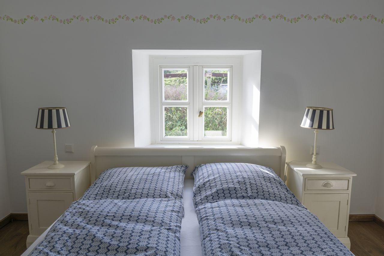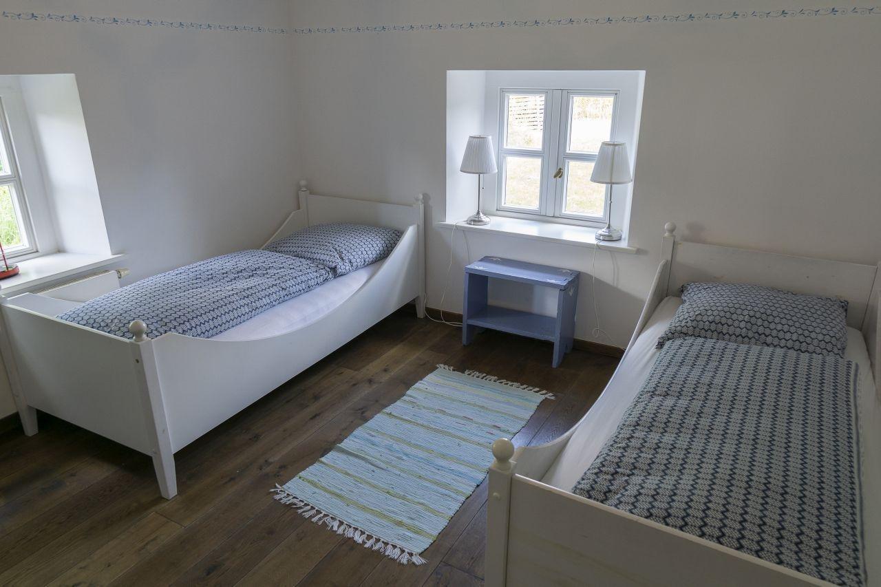 2 Schlafzimmer als Doppelzimmer und ein kleines Einzelzimmer mit ca 7 qm im Erdgeschoss. 1 großes modernes Bad mit Dusche und Badewanne und WC einem Gäste WC einer Küche mit Esstisch für 7 Personen. Geschirrspüler, elektrischer Herd mit 4 Kochfeldern, Toaster, Mixer, und einem Wohnzimmer.