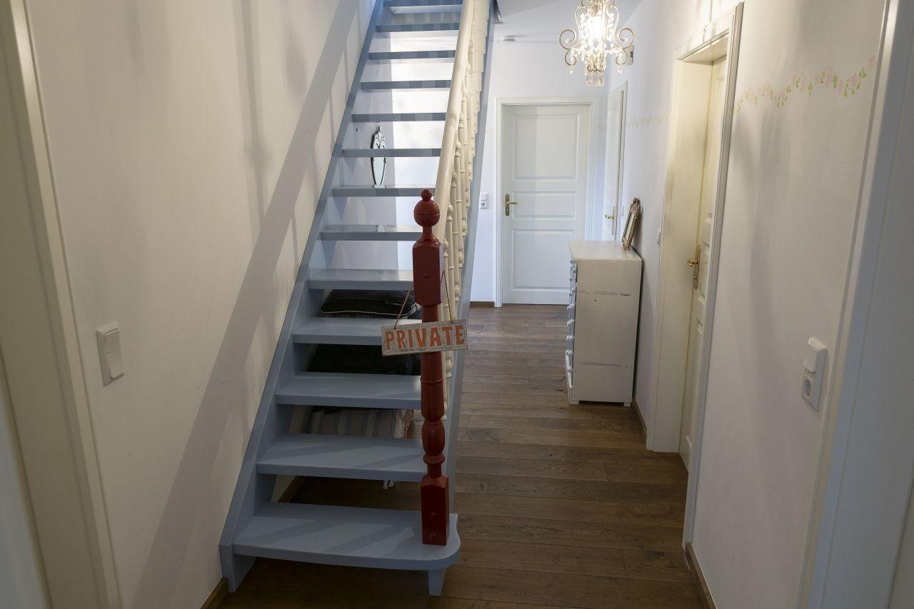 Zur Verfügung steht das gesamte Erdgeschoß. Eine Waschmaschine und Trockner sind auch vorhanden. Insgesamt verfügt das Haus über 5 Betten, sowie ein Babyzustellbett. Die Wohnfläche im Erdgeschoß beträgt ca 100 qm. Im Garten ist eine Terrasse mit einer Essgelegenheit. Im Haus haben Sie kostenfreien W-Lan Zugang. Die Maximal Belegung sind 5 Personen plus 1 Baby.