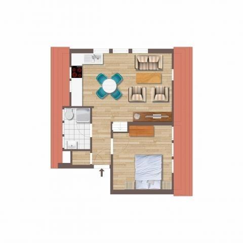 - Wohn-/Schlafzimmer, 20 m², 1 Person