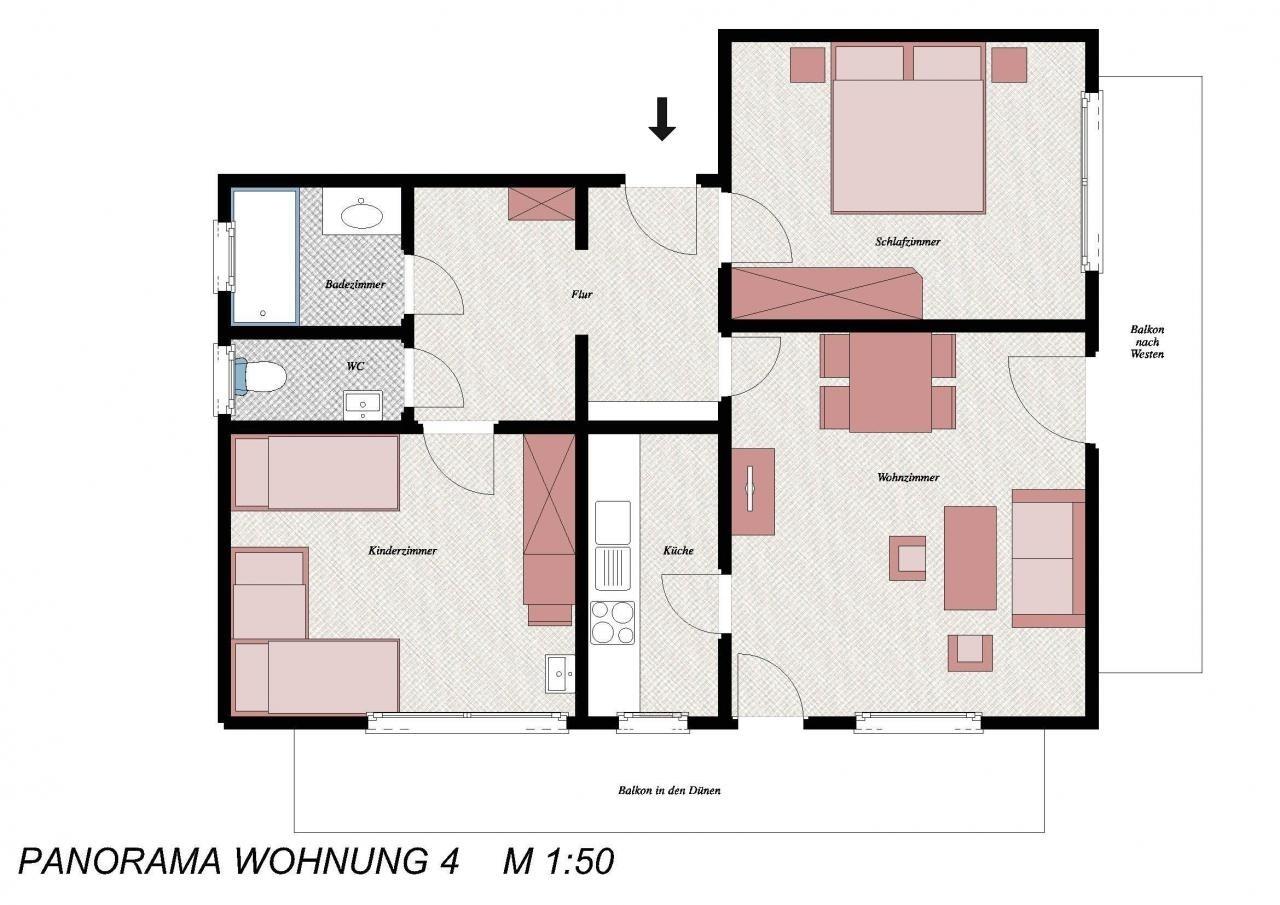 Das Ferienhaus Panorama liegt zentral am Rand der Dünen. Die Wohnungen sind großzügig geschnitten, mit 2 sep. Schlafzimmern, herrlichem Balkon zur Watt- oder Meerseite. Ein großteil der Wohnungen verfügt über Spülmaschine und Mikrowelle. Der Strand, das Schwimmbad, Einkaufsmöglichkeiten und Restaurants sind nur wenige Schritte entfernt.